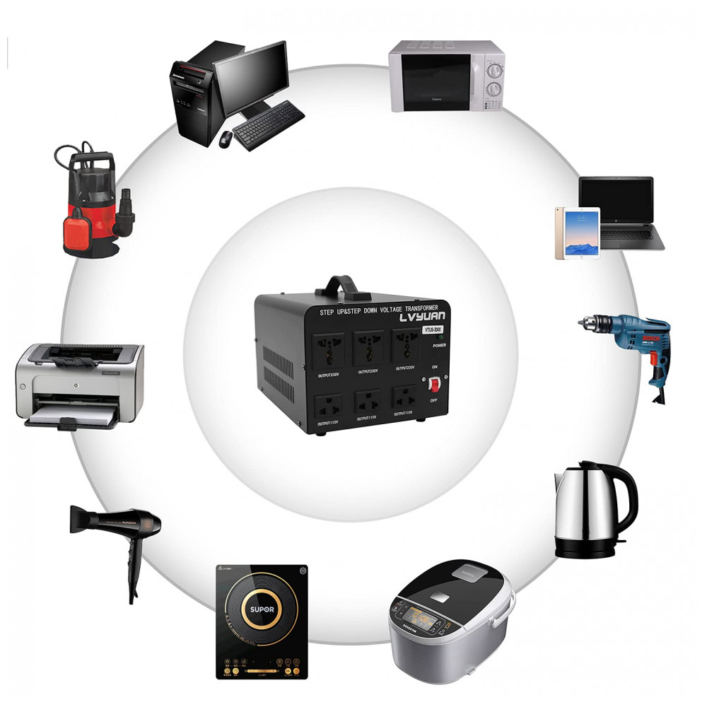 Transformador de Tensão 3000W Converte 220V para 110V ou 110V para 220V Yinleader VTUS 3000 6S Preto