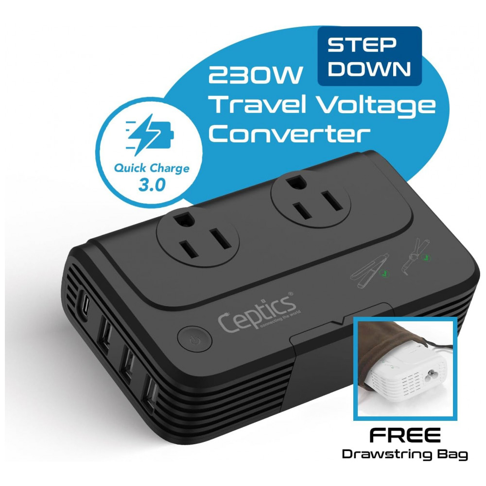 Conversor de tensão perfeito para viajantes céticos Nossa tecnologia patenteada permite que você utilize seu ferro de ondulação, alisador ou qualquer outro aparelho de até 200W em países com tensão de 220V. O conversor converte a tensão de 220V da Europa, Ásia, Austrália ou África para até 110V, tornando o ideal para carregar uma ampla variedade de dispositivos.