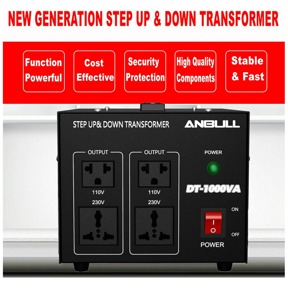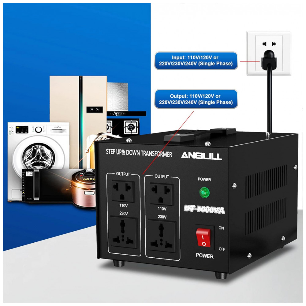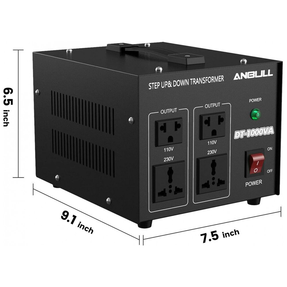 Transformador de Tensão de 1000 Watts 220V 230V 240 Volts para 110V ou 110V para até 240 V Anbull Preto