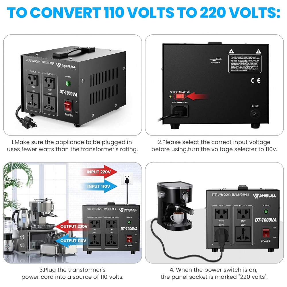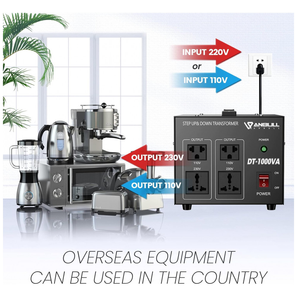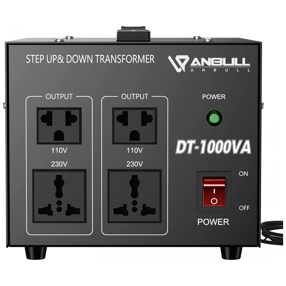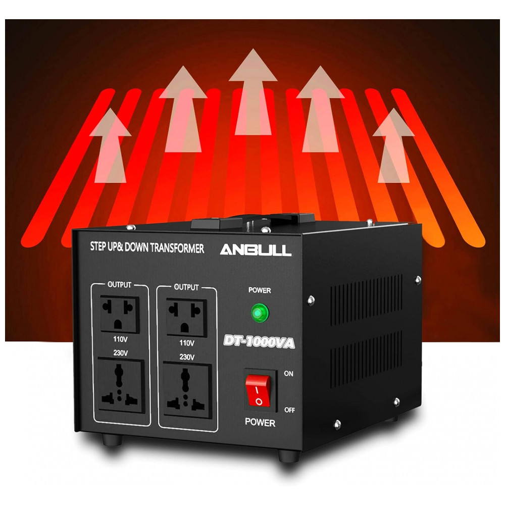 Transformador de Tensão de 1000 Watts 220V 230V 240 Volts para 110V ou 110V para até 240 V Anbull Preto