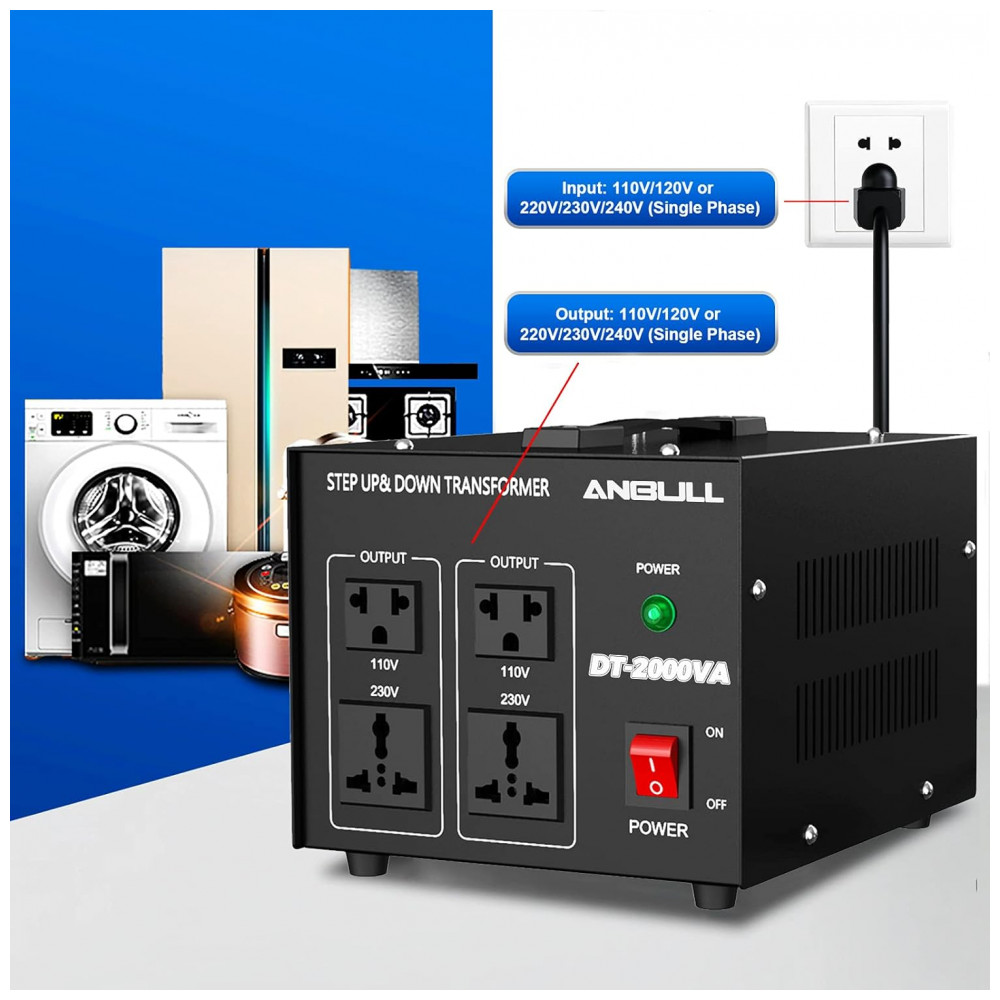 Transformador de voltagem 2000W Anbull conversor step up e step down 110V 220V
