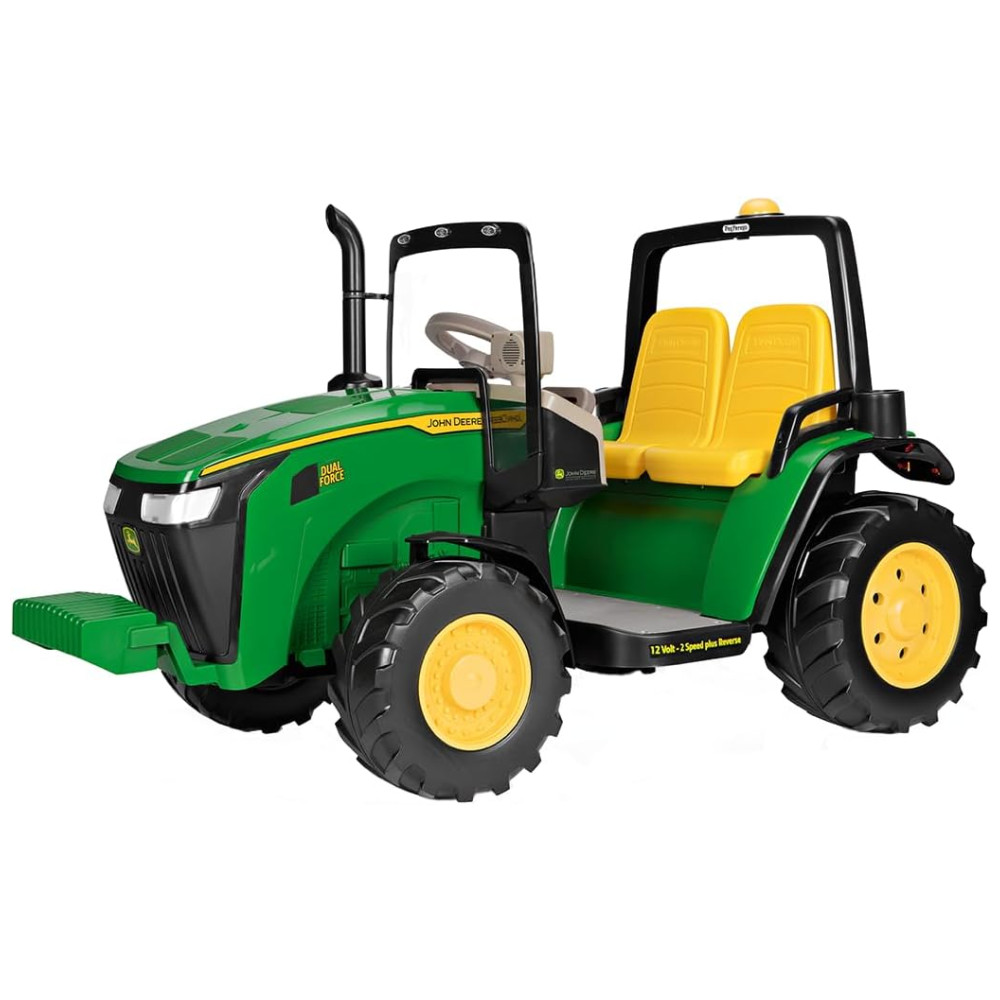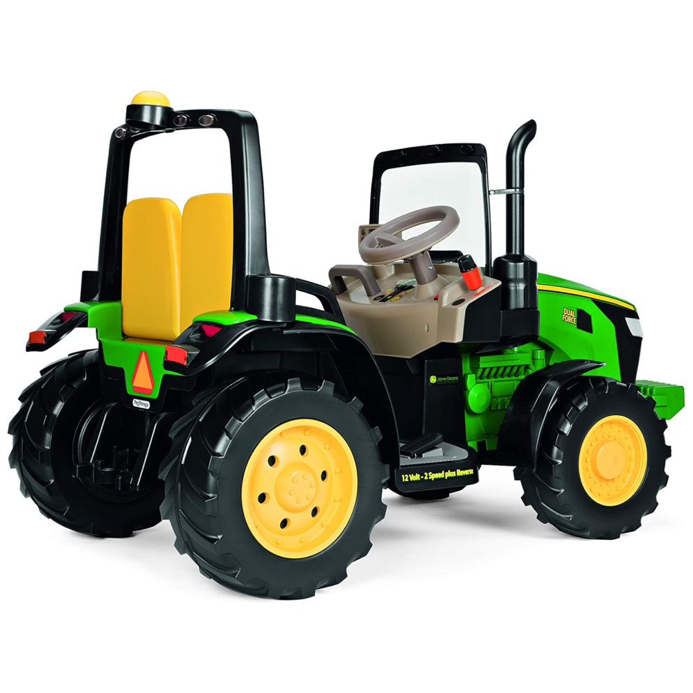 O John Deere Dual Force leva a pilotagem com amigos a outro nível. O Dual Force tem 2 assentos, o que permite mais espaço para o motorista e um companheiro de viagem. Toque suas músicas favoritas com o rádio FM funcional. Seu filho vai gostar de andar como um verdadeiro fazendeiro com o para brisa alto e as rodas de alta tração. O John Deere Dual Force inclui 2 velocidades 21, 4 ou 41, 2 mph, mais ré, o que lhes permite dirigir na grama, terra ou superfícies duras. Os pais controlam a velocidade com o recurso de bloqueio da 2 marcha. Bateria recarregável de 12 volts e carregador incluídos. Feito no Canadá, em nossa fábrica usando componentes nacionais e globais.