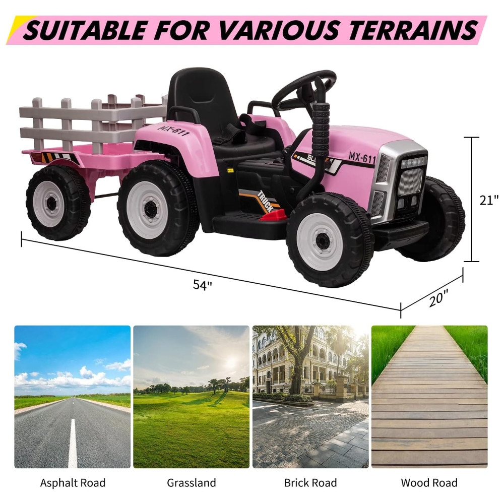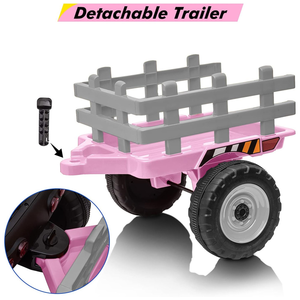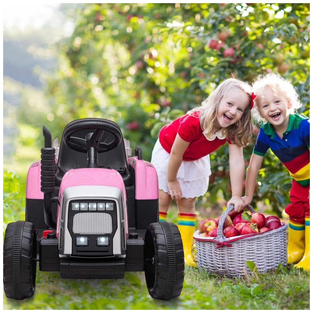 Trator Elétrico Infantil 12V com Controle Remoto Faróis de LED e Mudança de Marcha PINGHU Rosa