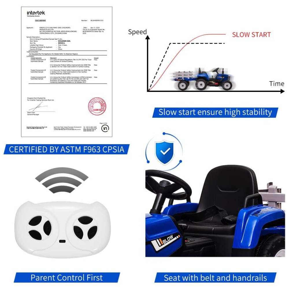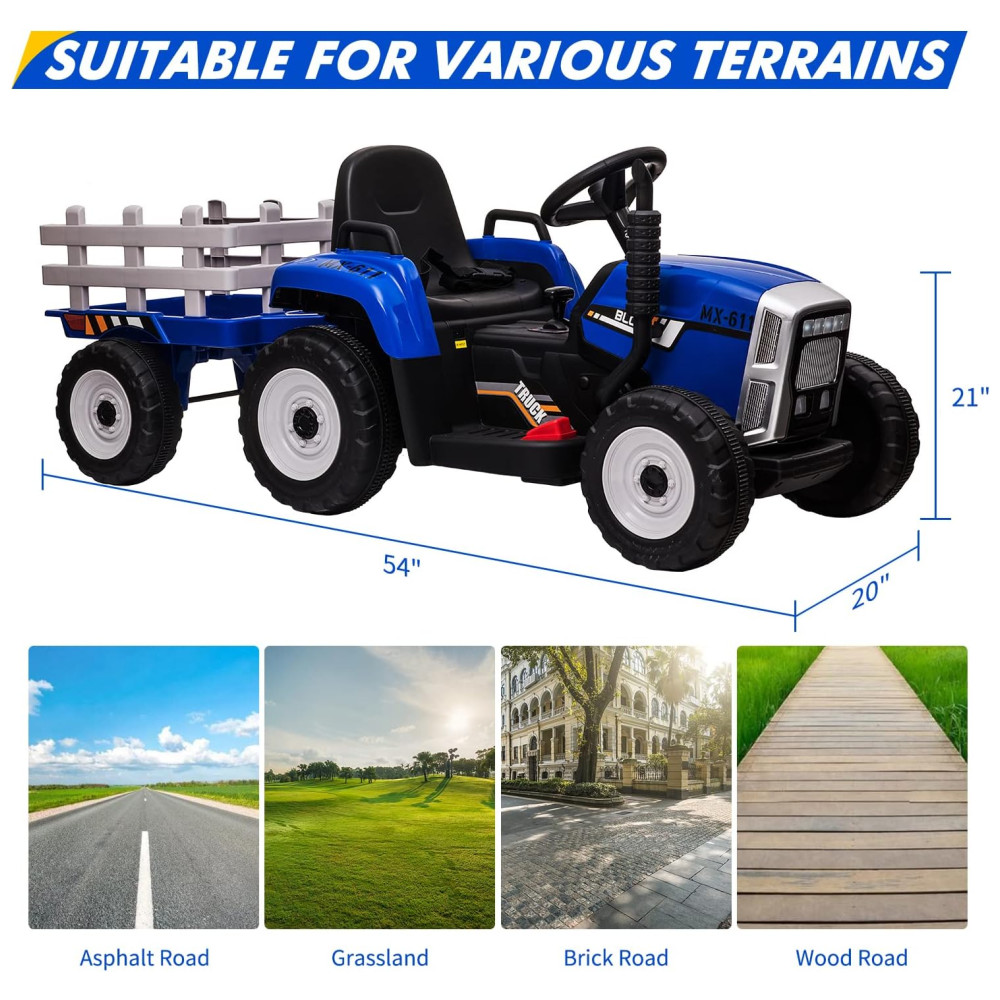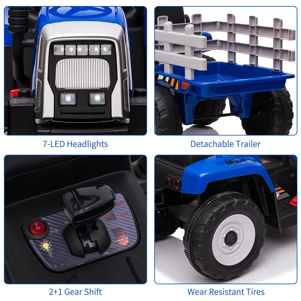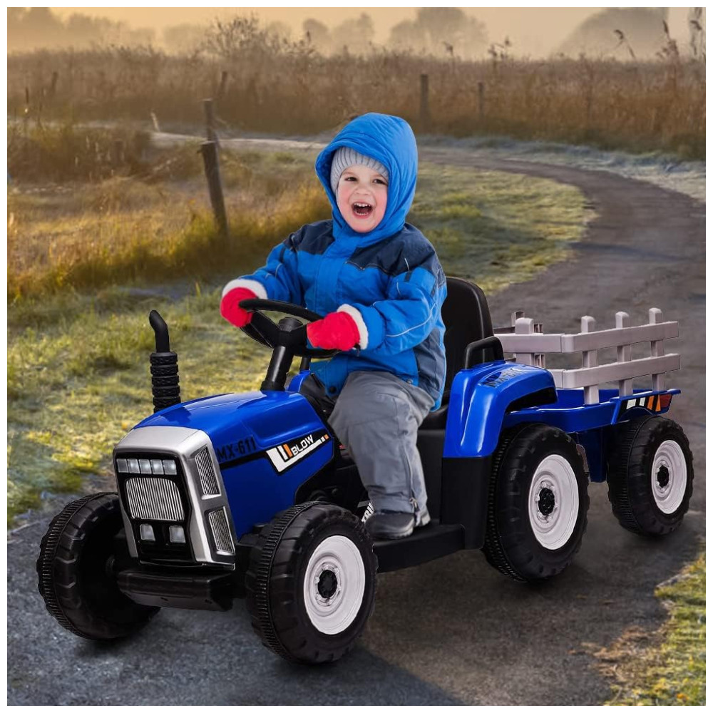 Trator Elétrico Infantil 12V com Trailer e Controle Remoto Faróis de LED e Mudança de Marcha Palby’s