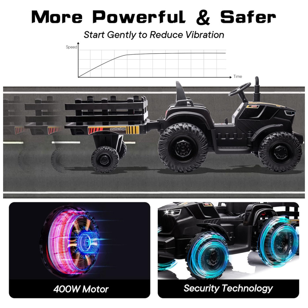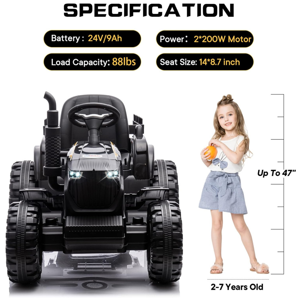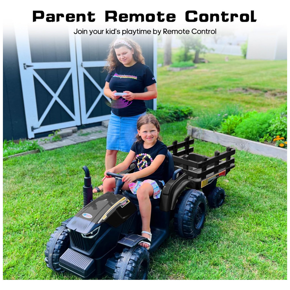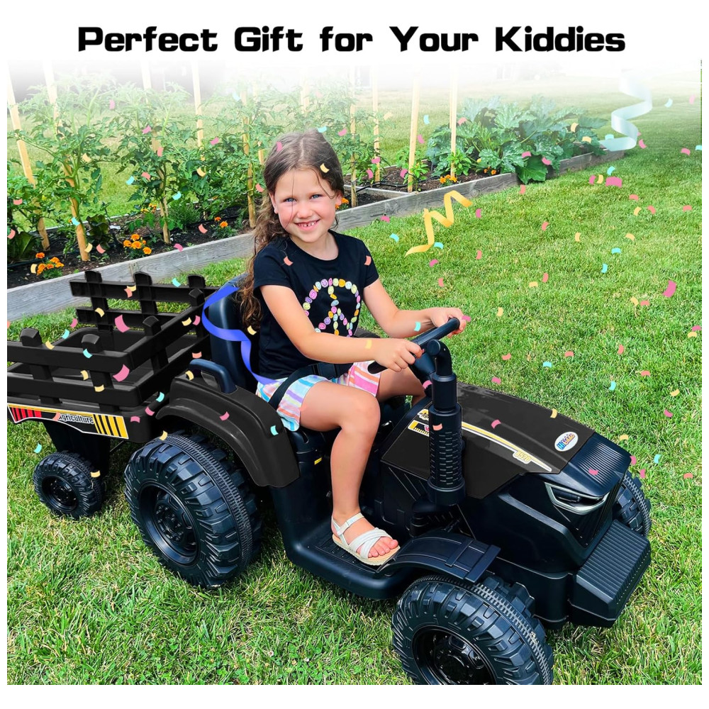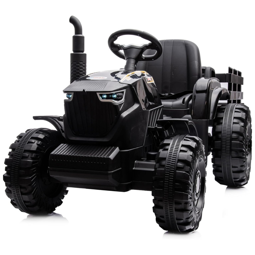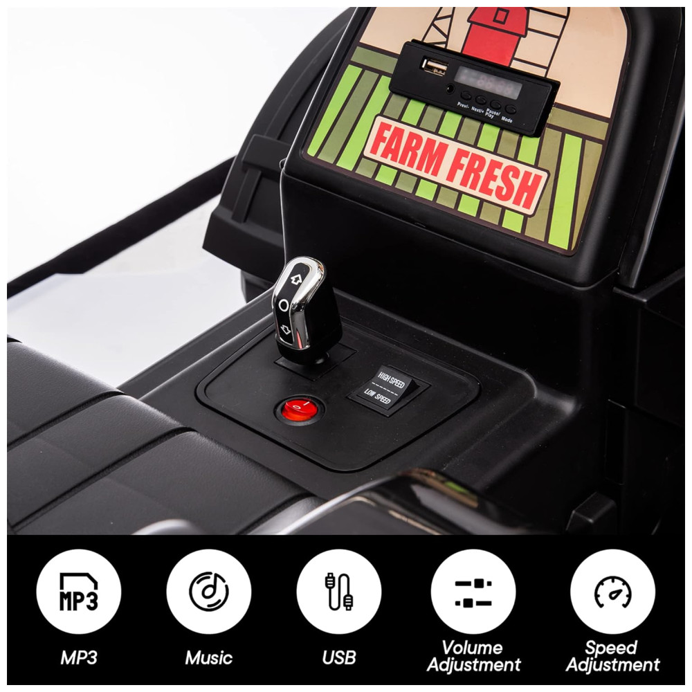 Trator Elétrico Infantil com Controle Remoto Reboque e Velocidade até 8 km/h 24V Hikiddo Preto