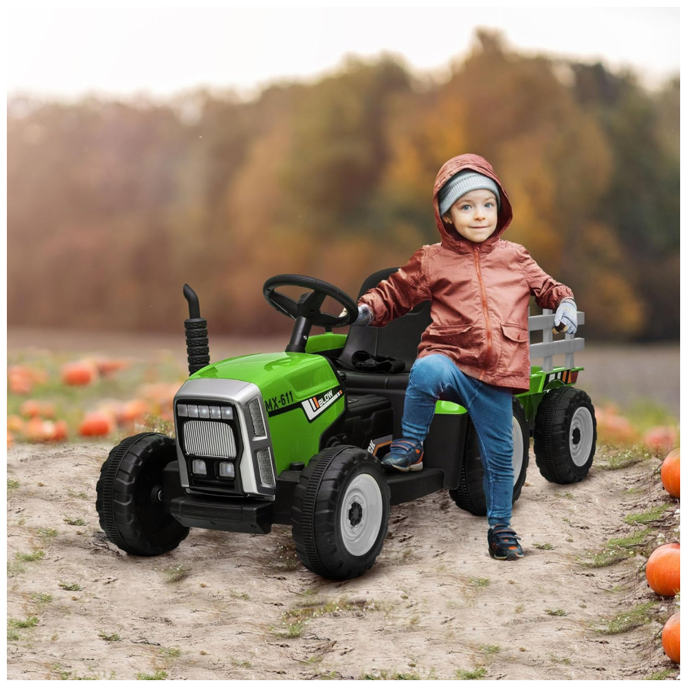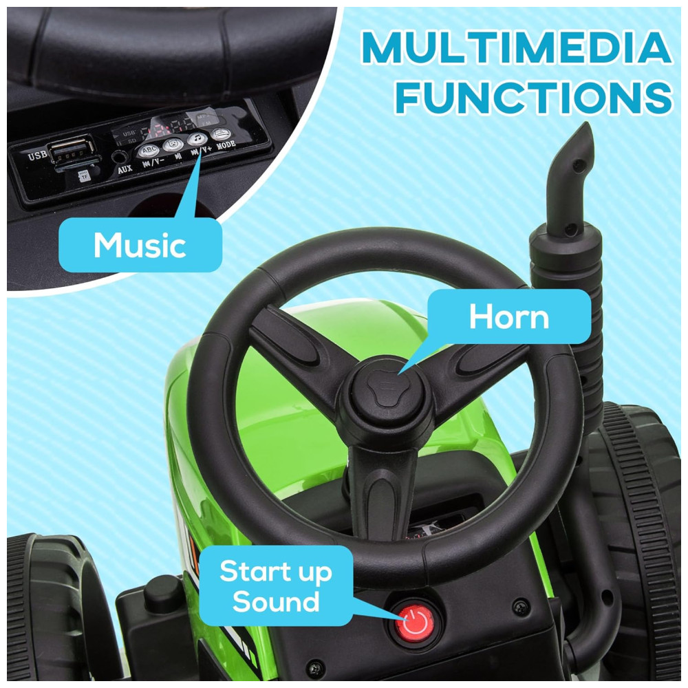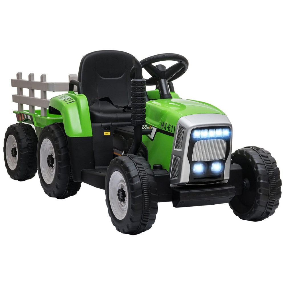 Trator Elétrico Infantil com Controle Remoto Reboque Motores Duplos de 25W Som e Luzes LED 12V Aosom Verde