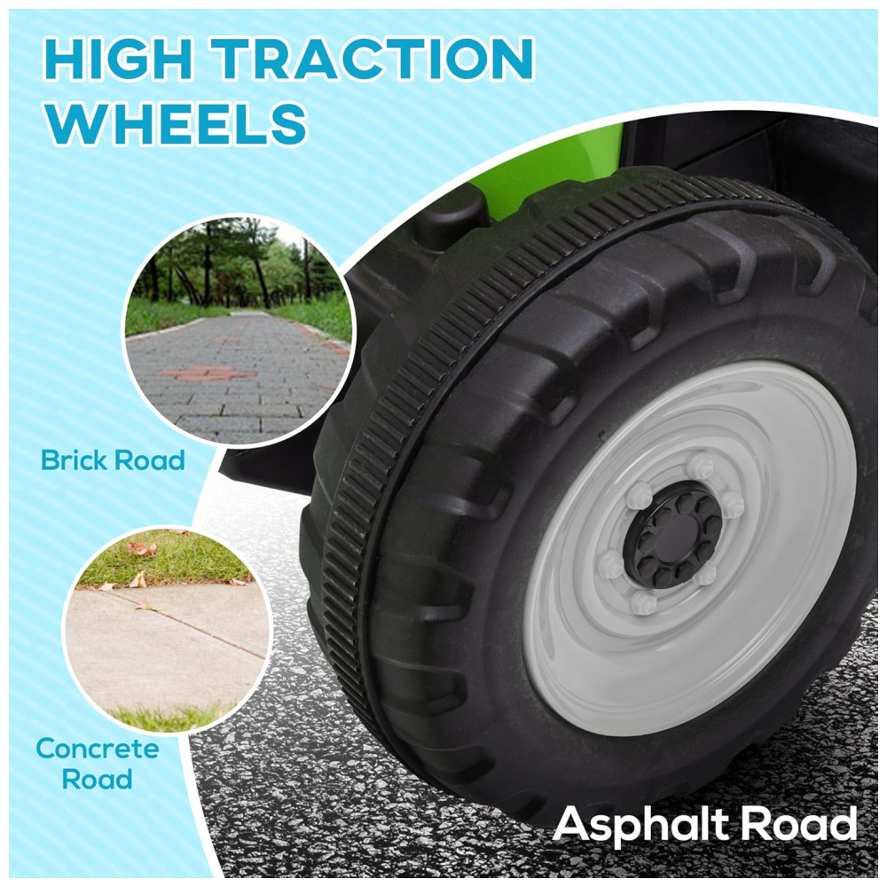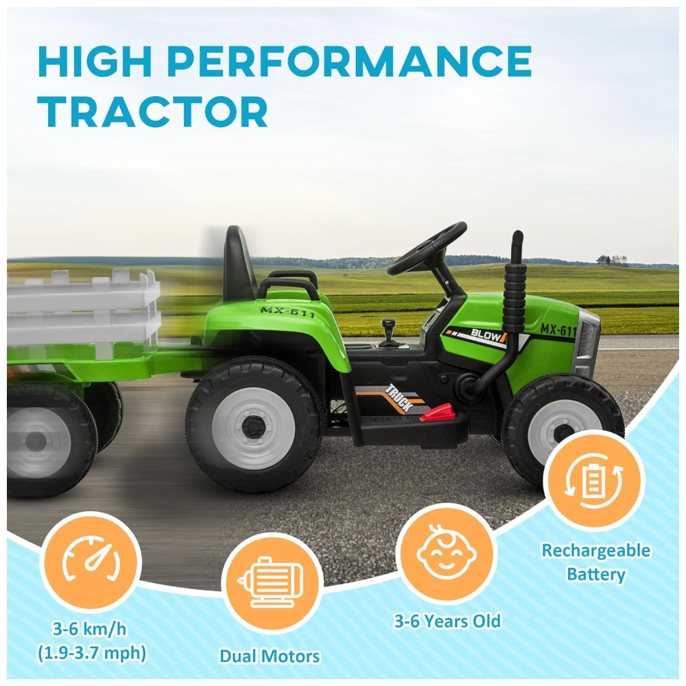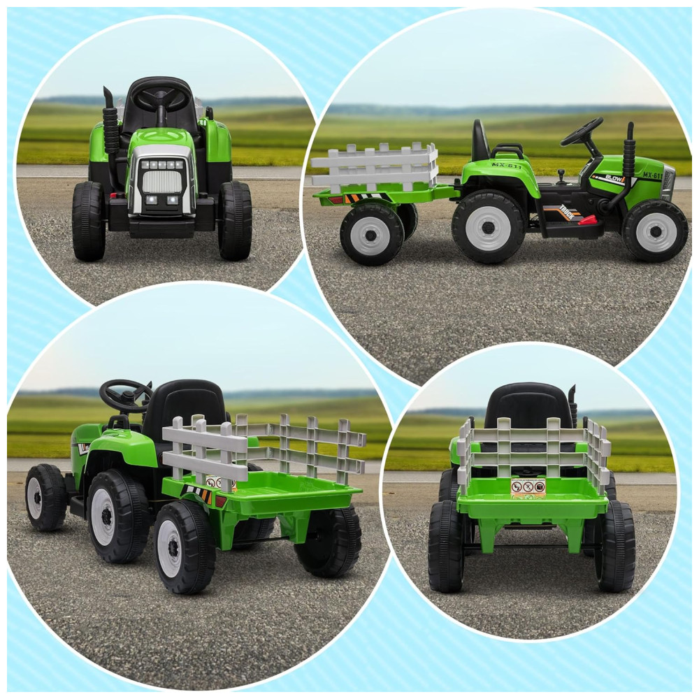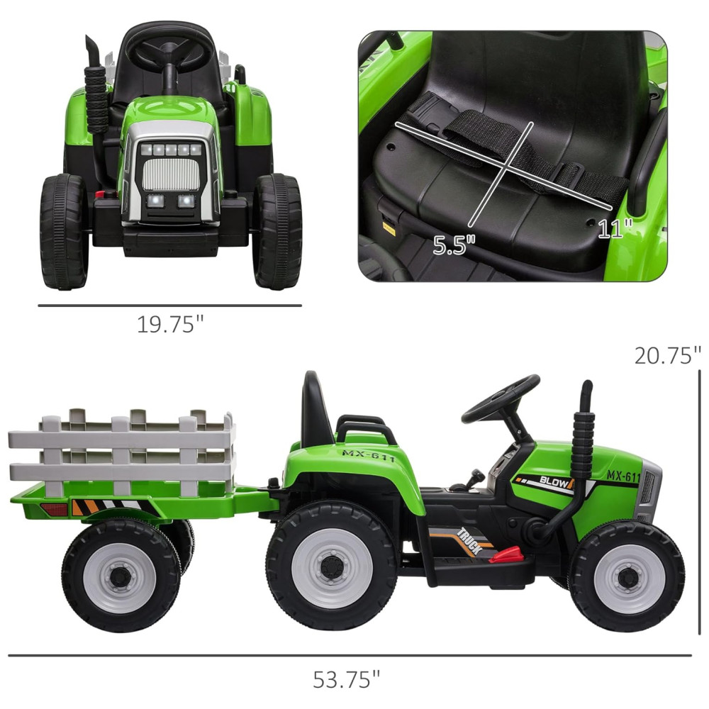 Trator Elétrico Infantil com Controle Remoto Reboque Motores Duplos de 25W Som e Luzes LED 12V Aosom Verde
