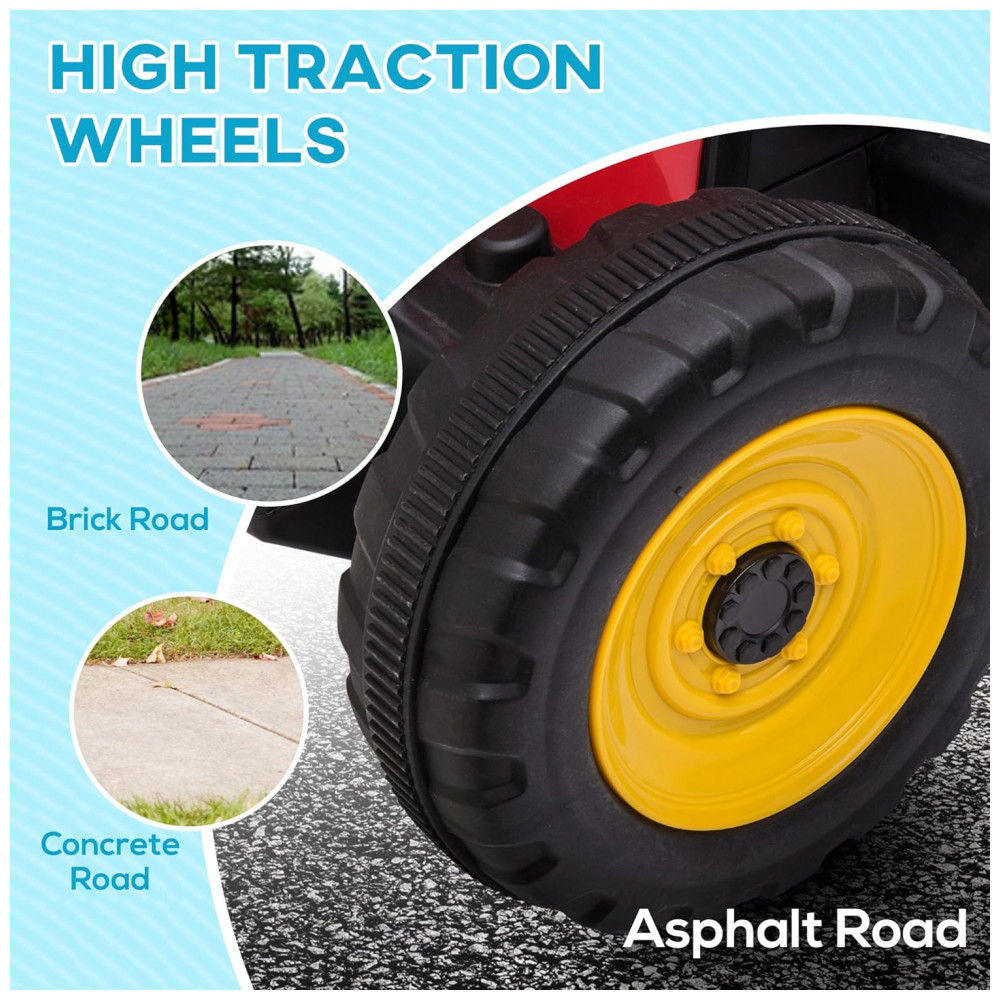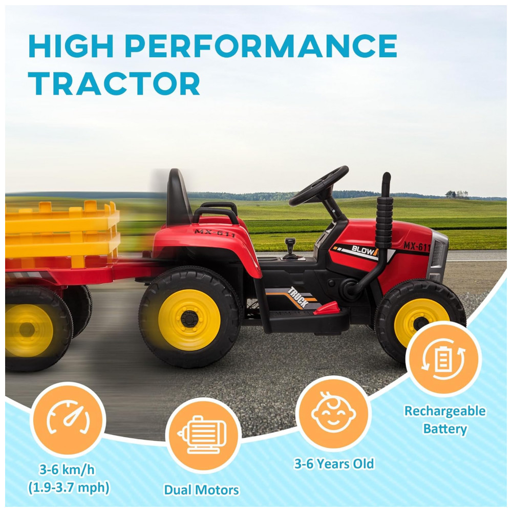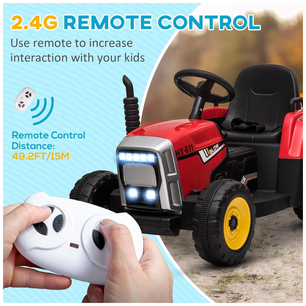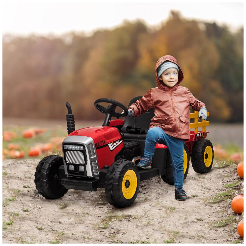Trator Elétrico Infantil com Controle Remoto Reboque Motores Duplos de 25W Som e Luzes LED 12V Aosom Vermelho