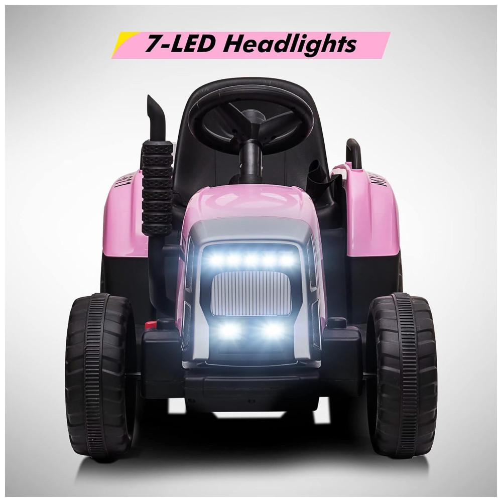 Trator Elétrico Infantil com Faróis LED Rodas Resistentes e Design Realista – Rosa Claro Ideal para Crianças de 3 a 6 Anos