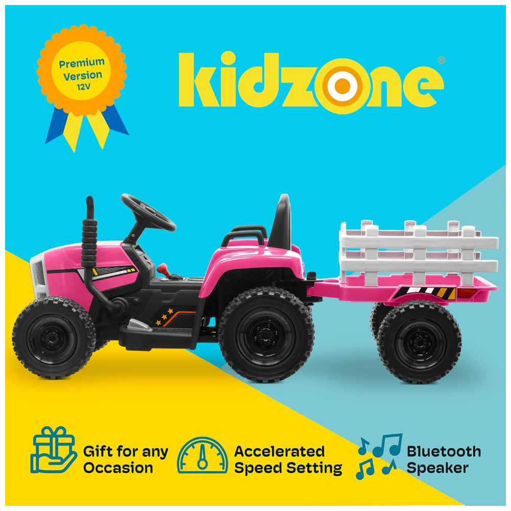 Trator Elétrico Infantil com Pneus de EVA e Motores Duplos de 35W 12V 7AH Kidzone Rosa