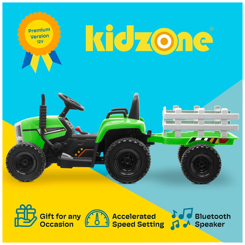 Trator Elétrico Infantil com Pneus de EVA e Motores Duplos de 35W 12V 7AH Kidzone Verde