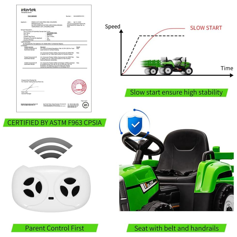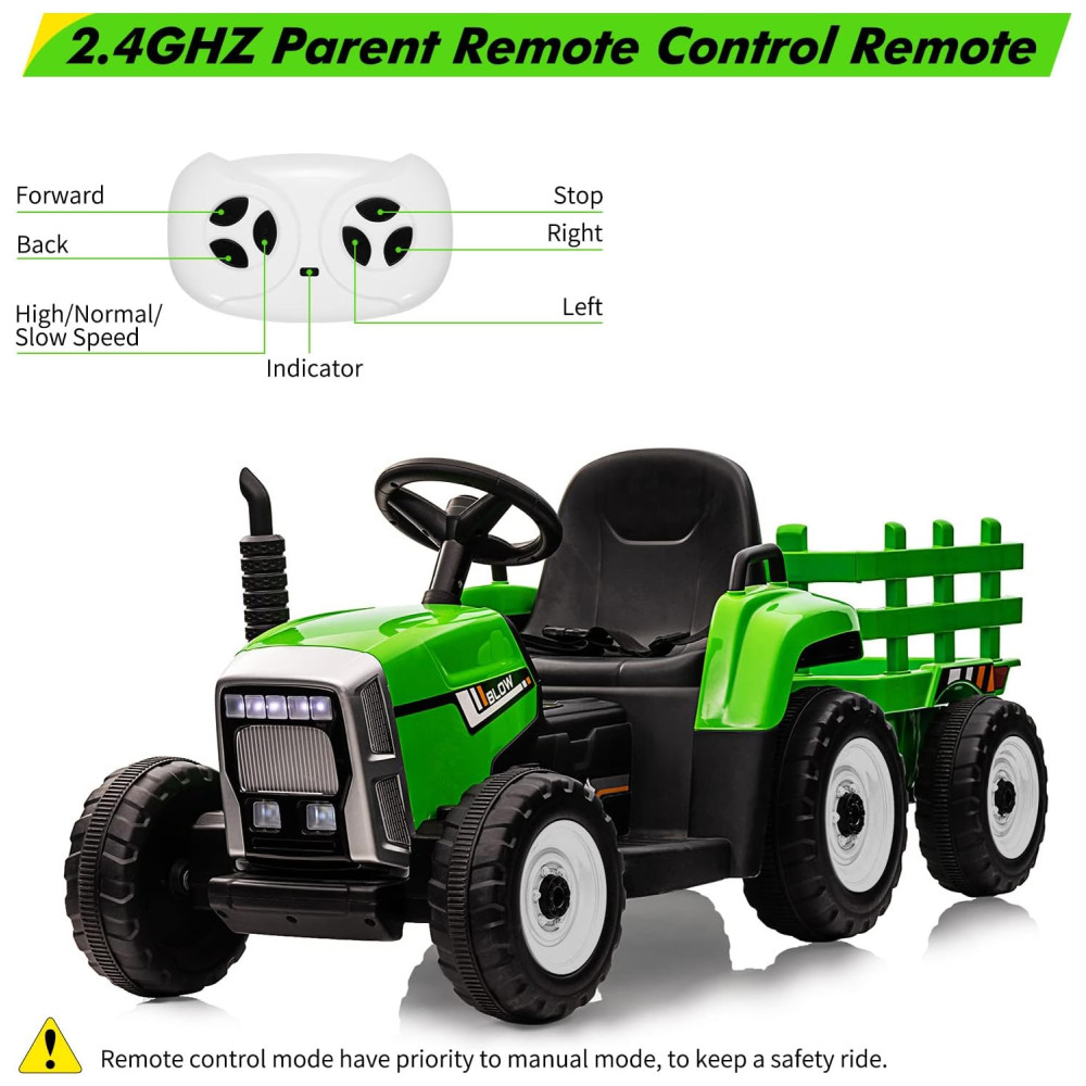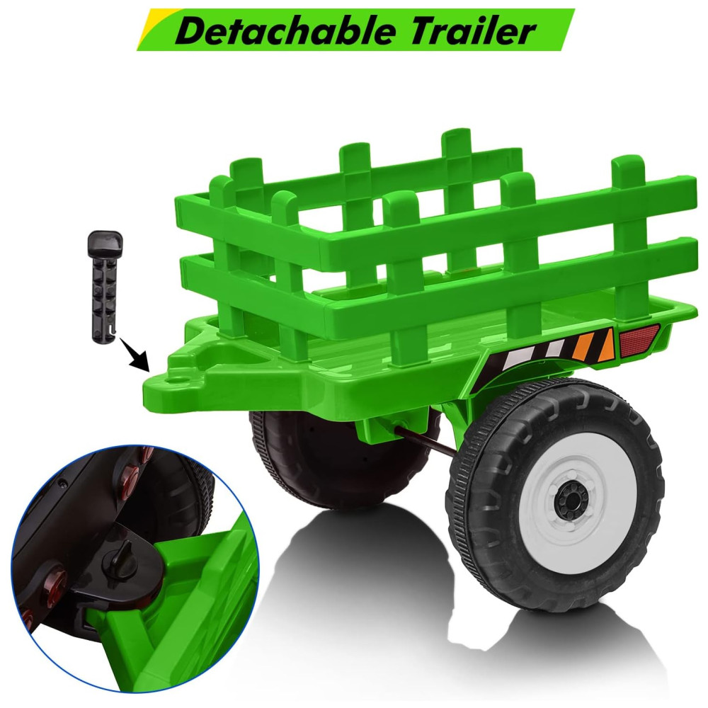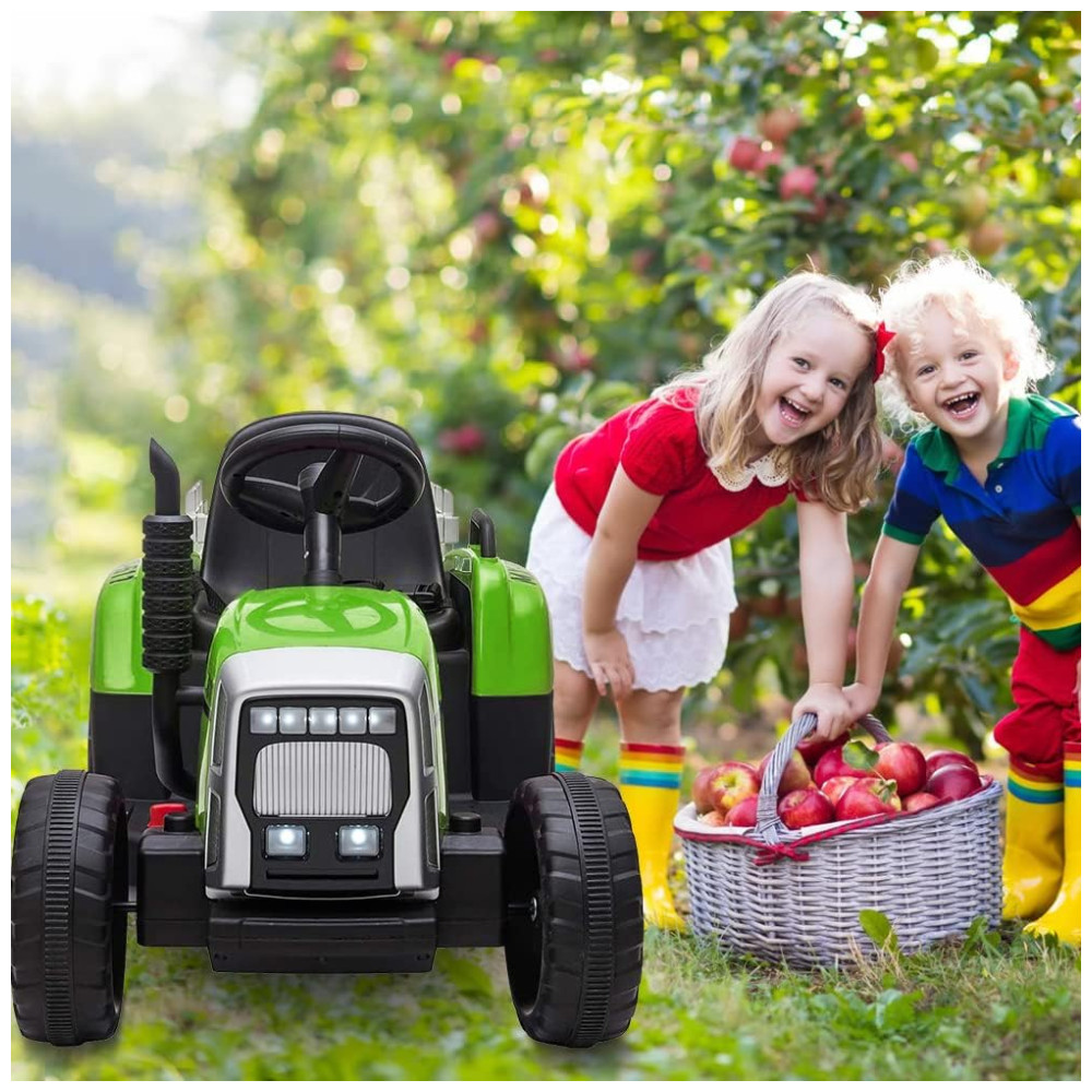 Trator Elétrico Infantil com Reboque Controle Remoto e Faróis de LED 12V PALBY’S Verde