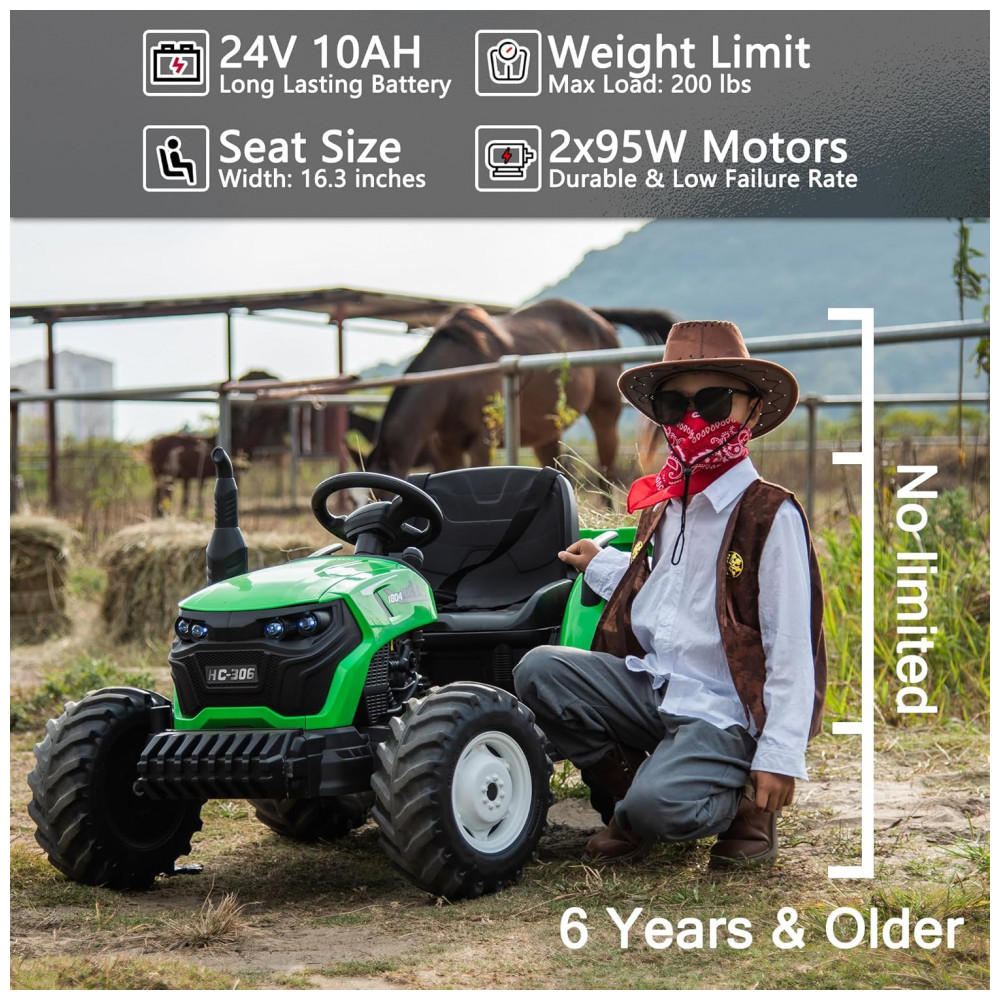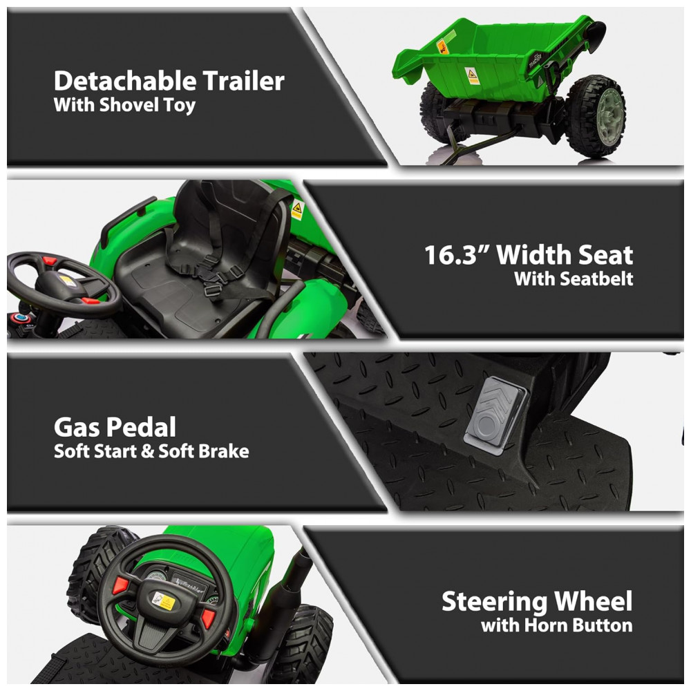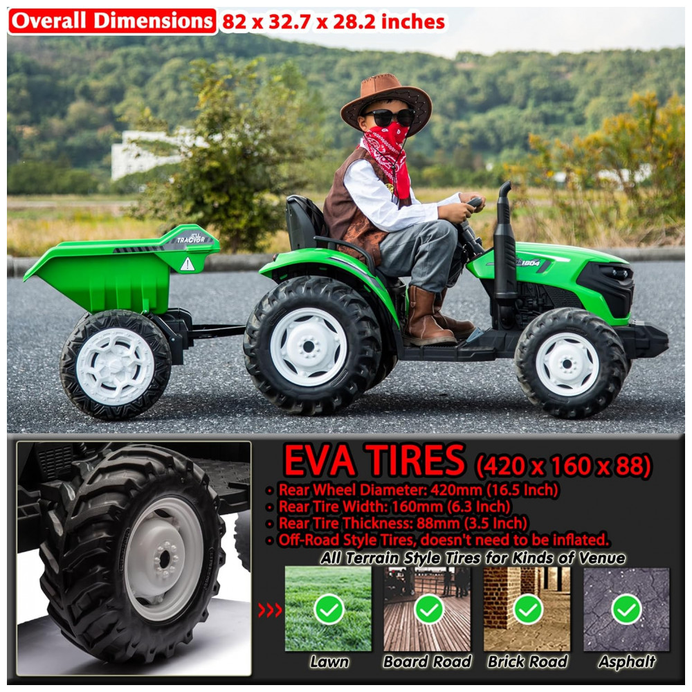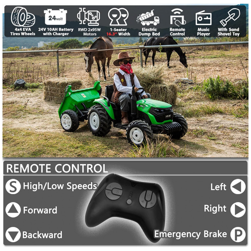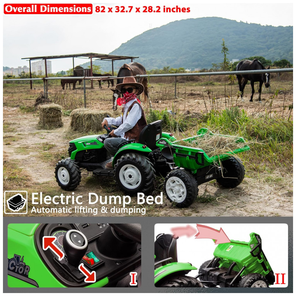 Trator Elétrico Infantil Sopbost 24V 10Ah 2WD Reboque Elétrico Rodas EVA Grande Suspensão Traseira Controle Remoto 90kg Verde