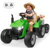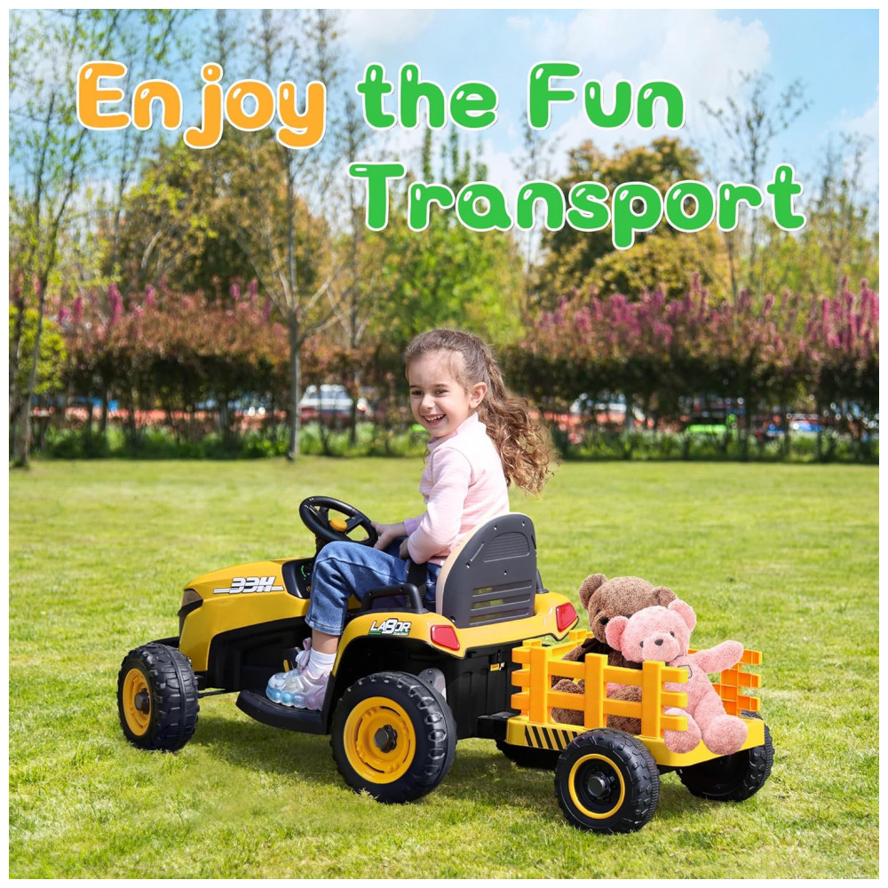 Trator Infantil Elétrico ANPABO Amarelo 24V Trailer Basculante Removível Pneus EVA Controle Remoto com Som Realista e Bluetooth
