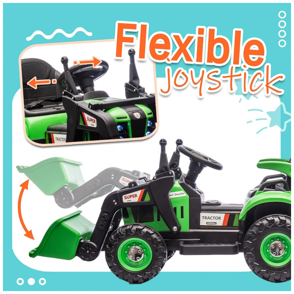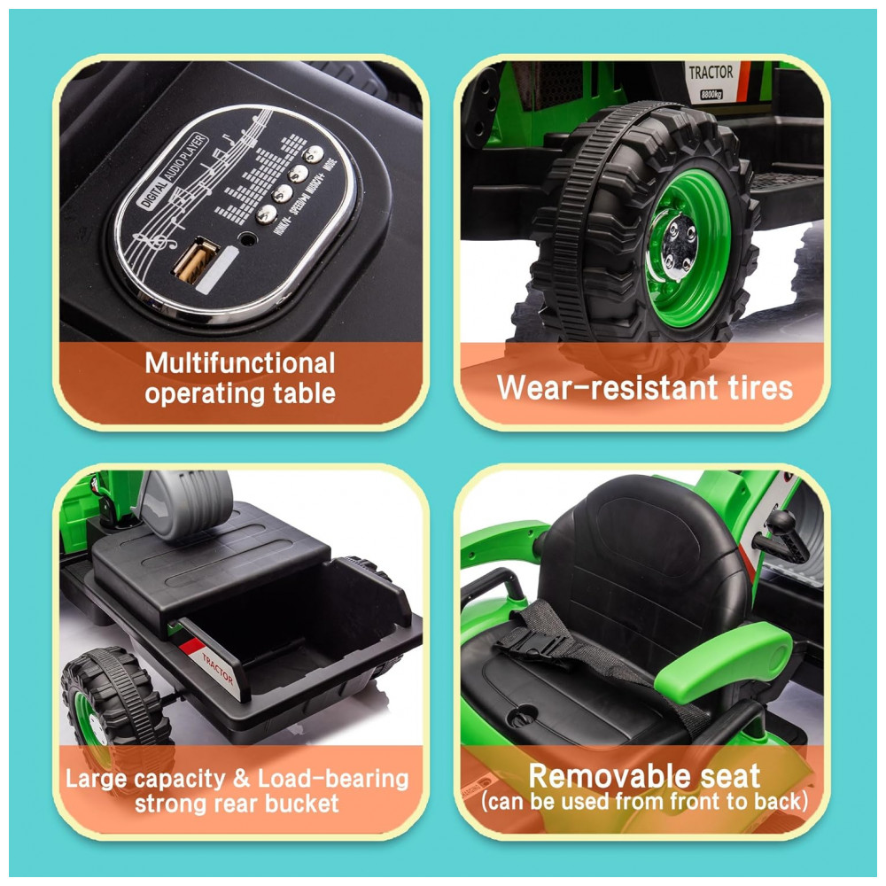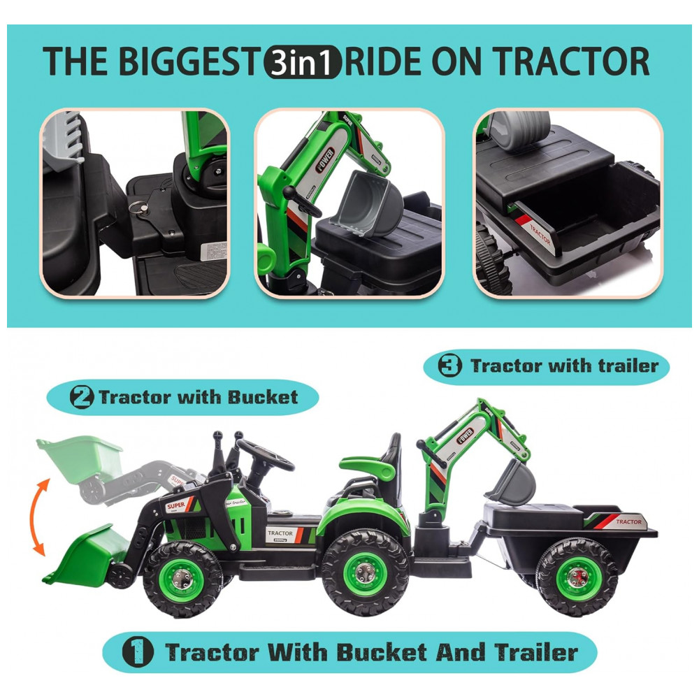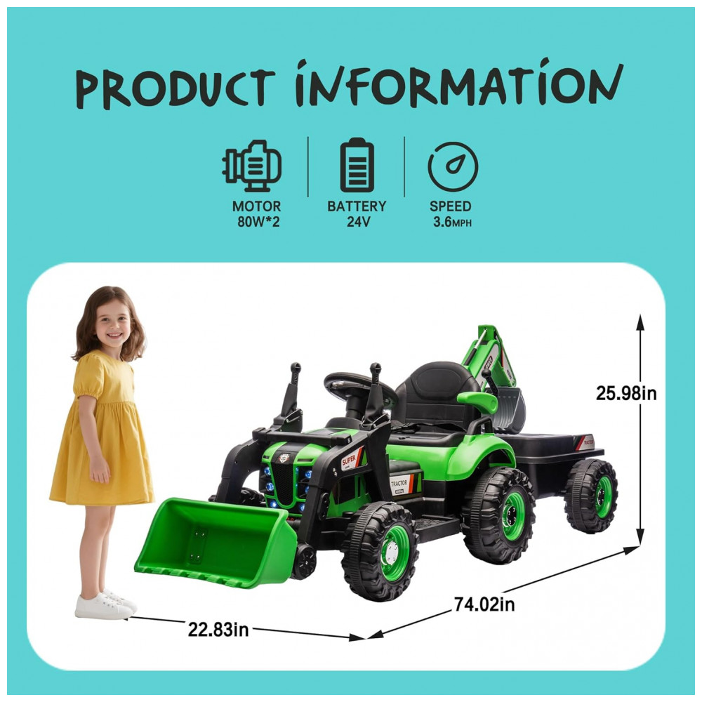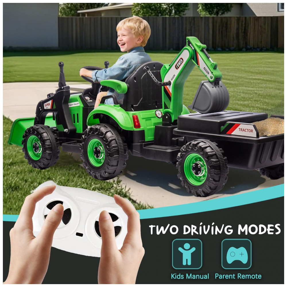 Trator Infantil Elétrico NEWDOOD Verde 24V 4 em 1 Escavadeira Caminhão Basculante Controle Remoto com Assento Giratório