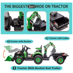 Trator Infantil Elétrico NEWDOOD Verde 24V 4 em 1 Escavadeira Caminhão Basculante Controle Remoto com Assento Giratório