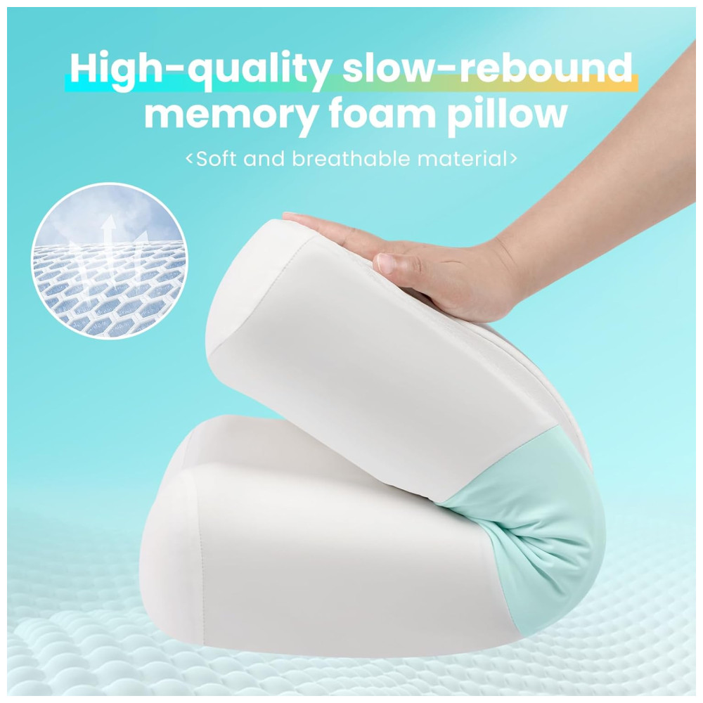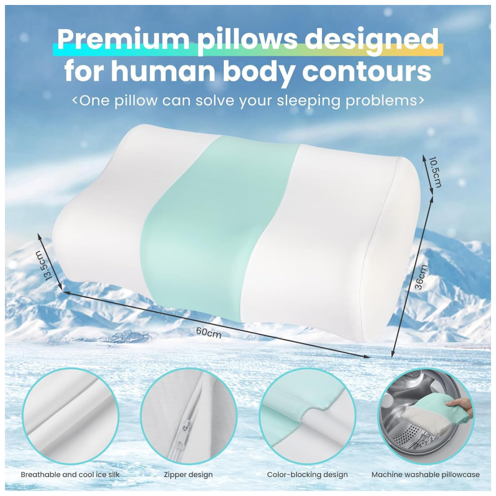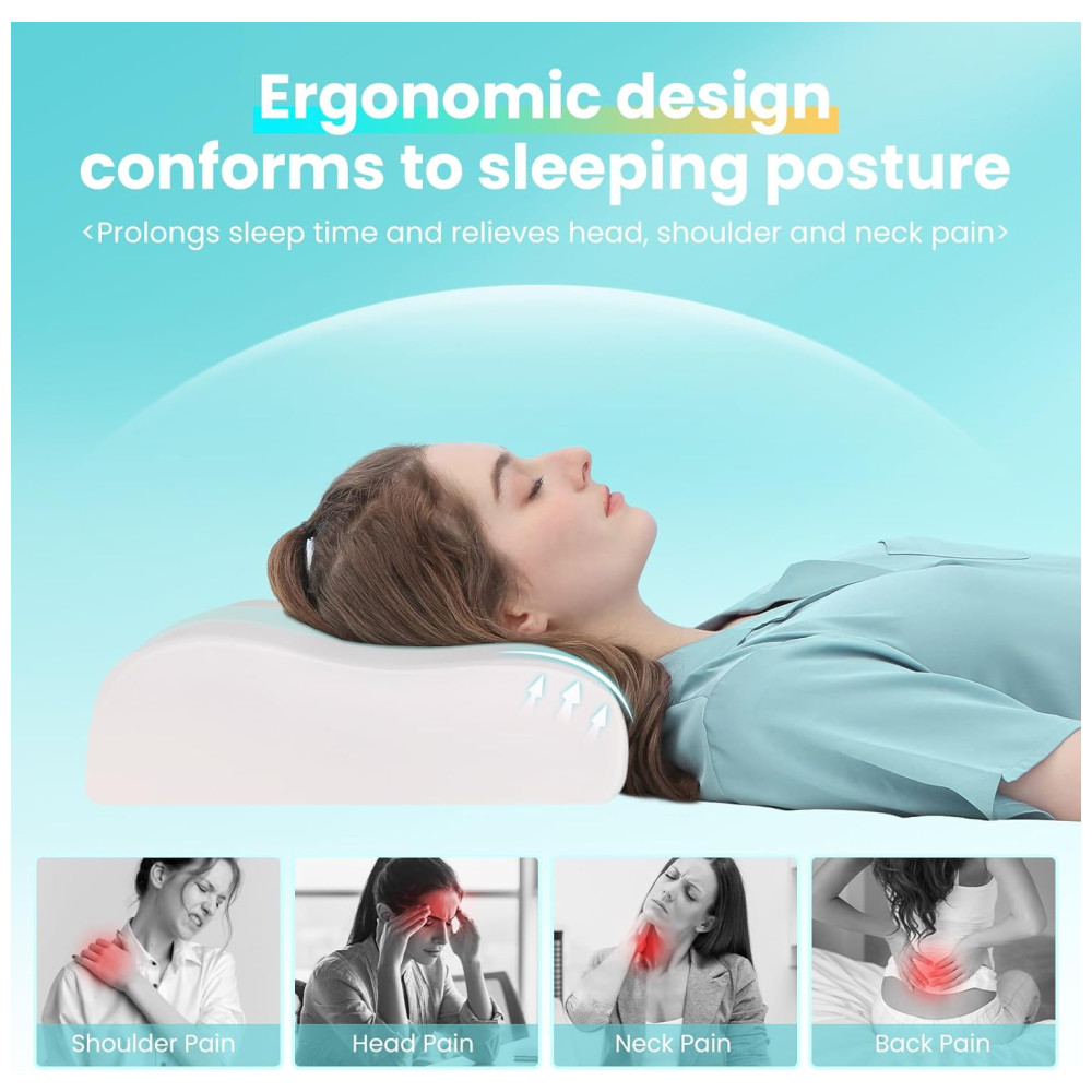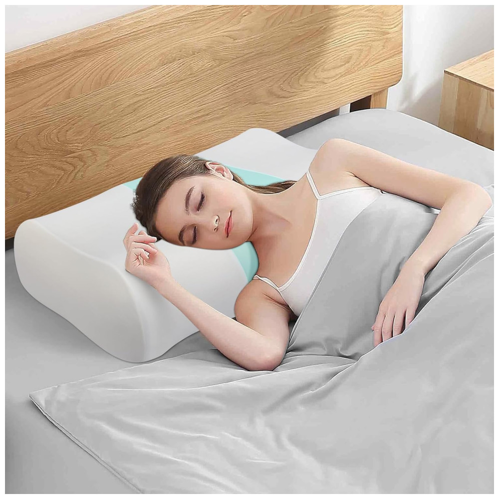 Travesseiro Cervical Ergonômico de Espuma de Memória Refrescante com Suporte de Pescoço JINXIA Branco e Azul
