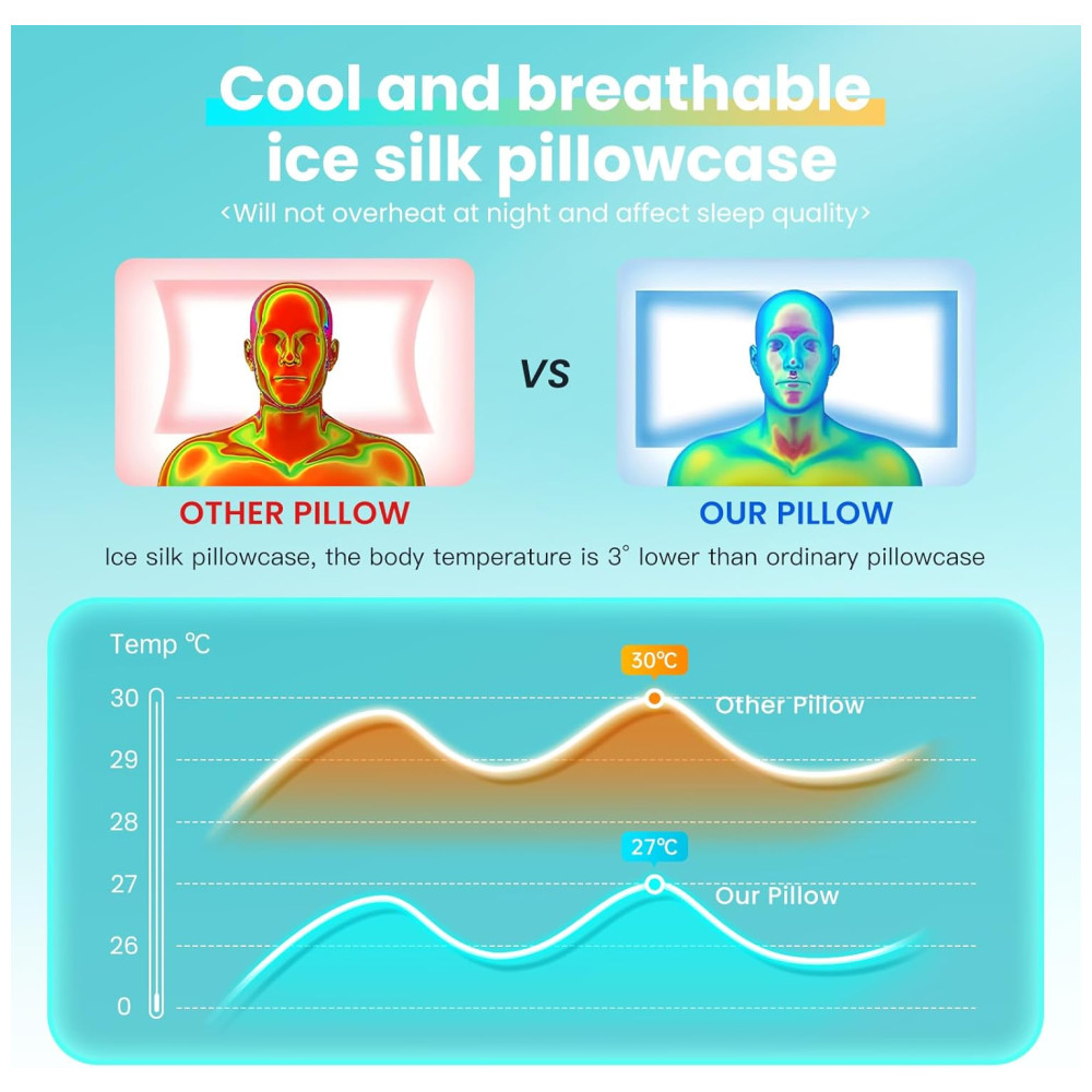 Acompanha uma fronha de resfriamento, lavável à máquina, confeccionada em tecido de poliéster e seda gelada, que ajuda a dissipar o calor e evita os suores noturnos. Além de aliviar dores, nosso travesseiro melhora a qualidade do sono, sendo uma excelente opção de presente para amigos, familiares ou para você mesmo.