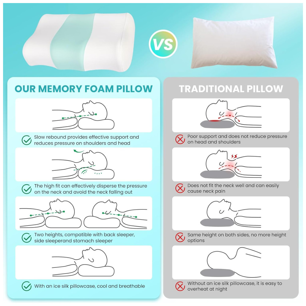 Nosso travesseiro de espuma viscoelástica possui um design ergonômico que oferece o suporte ideal para cabeça e pescoço, aliviando dores na coluna cervical. Versátil, ele se adapta à curva natural do corpo, sendo perfeito para quem dorme de lado, de bruços ou de costas.
