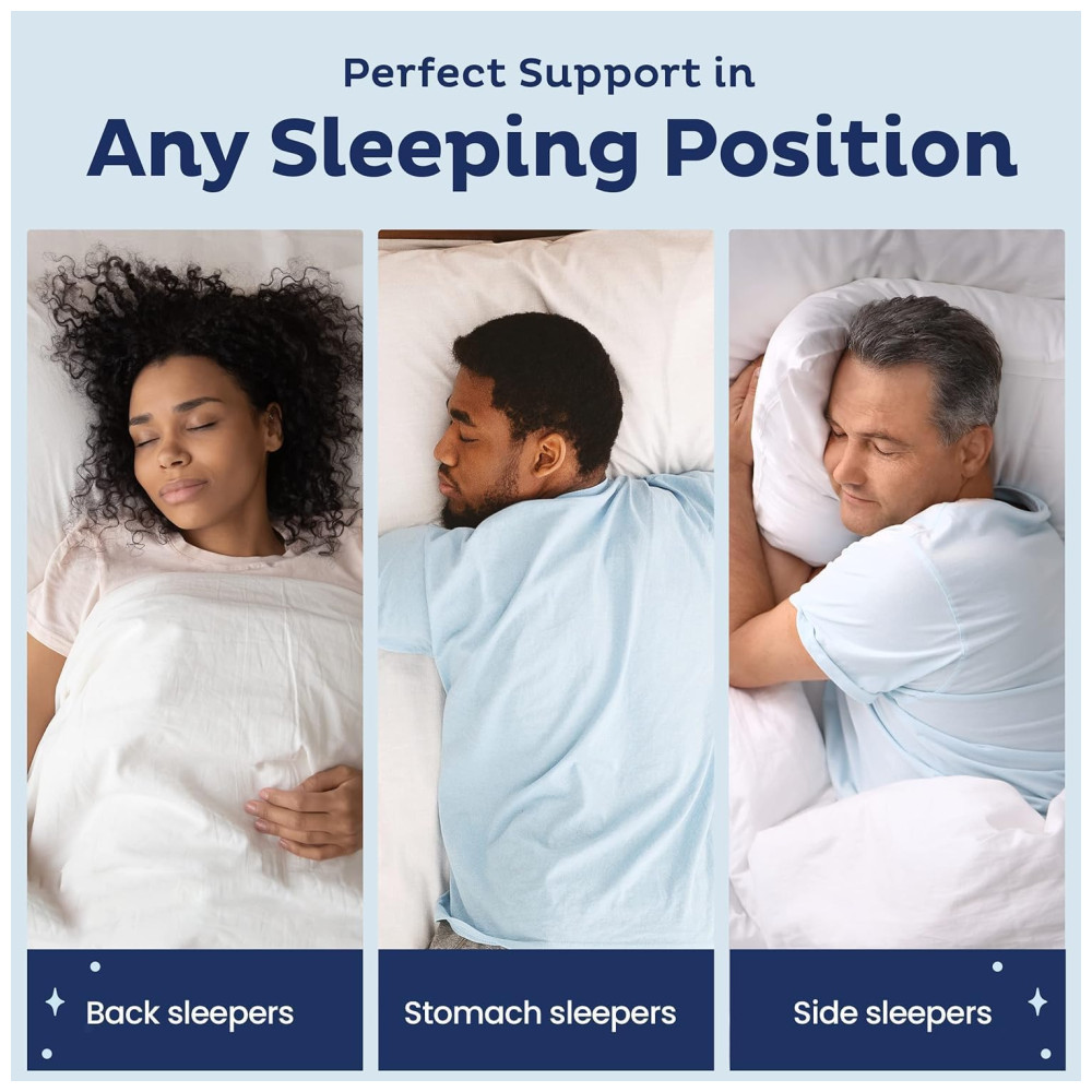Suporte perfeito pronto, pronto, durma Não importa se você dorme de costas, de barriga ou de lado, encontrará um suporte de primeira linha com nossos travesseiros de cama auto adaptáveis e sem zíper.