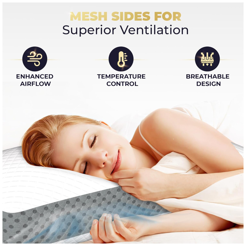Feito com espuma de memória virgem pura e de alta qualidade, garante conforto consistente e durabilidade ao longo do tempo. Os painéis laterais em malha promovem um fluxo de ar maximizado, evitando o superaquecimento durante a noite e ajudando a regular a temperatura do corpo.