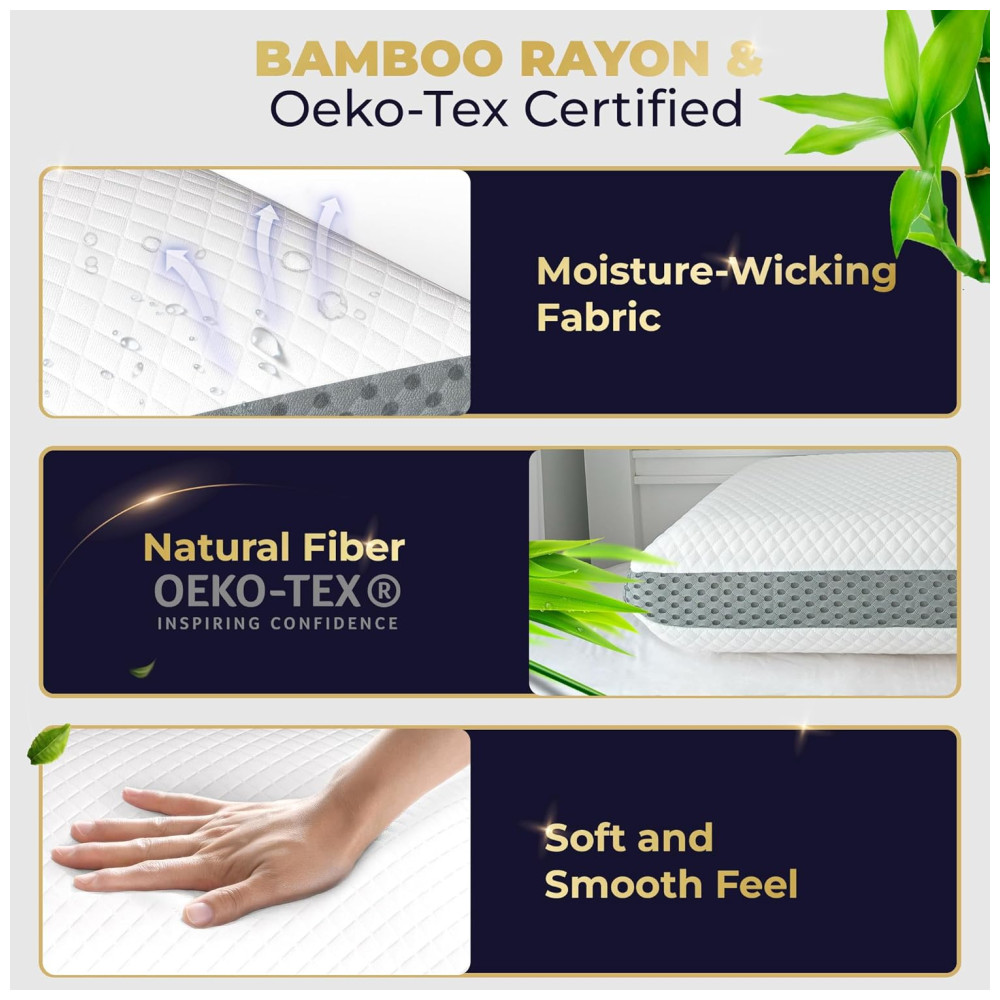 A fronha, confeccionada em rayon de bambu, é ultramacia e ecologicamente correta, reduzindo alérgenos e proporcionando uma experiência de sono limpa e relaxante. Com densidade média, nosso travesseiro é perfeito tanto para quem dorme de costas quanto para quem prefere dormir de lado, oferecendo o equilíbrio ideal entre maciez e firmeza.