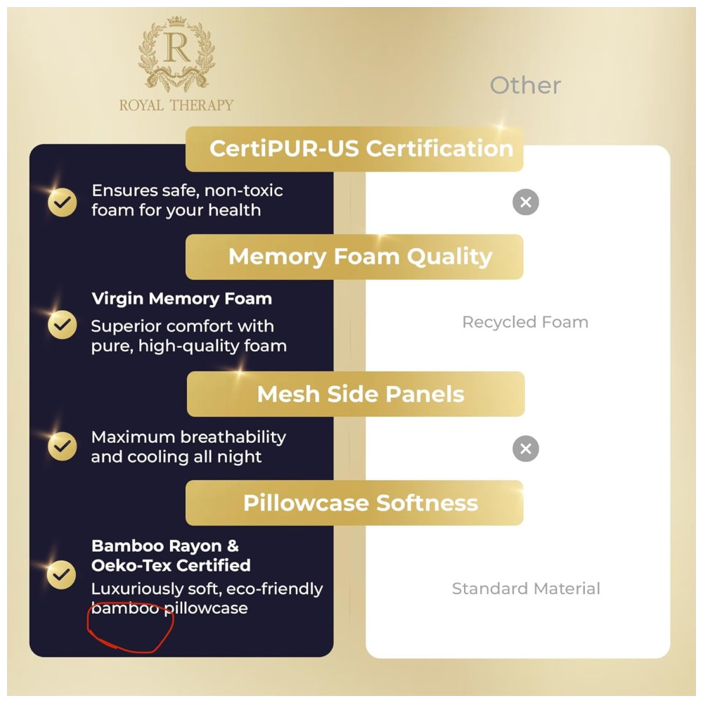 Travesseiro de Espuma de Memória para Alívio da Dor no Pescoço Tamanho King com Capa Removível Royal Therapy Branco