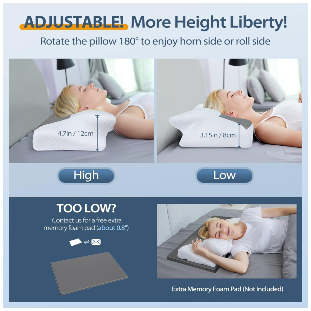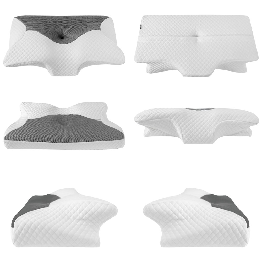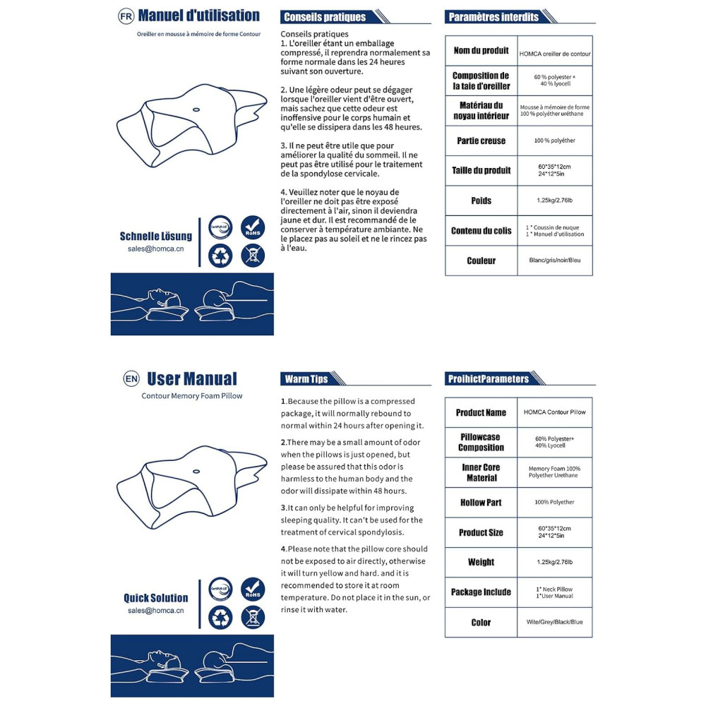 Alivia dores no pescoço e ombros Recomendado por médicos, o travesseiro HOMCA é projetado ergonomicamente para fornecer suporte e se alinhar ao nosso corpo, reduzindo assim as dores no pescoço e nos ombros. Se você está sofrendo de dor no pescoço, dormir de costas entre os dois chifres manterá o pescoço e os ombros em posição durante a noite. Também oferece suporte para aqueles que estão se recuperando de uma cirurgia na mandíbula ou têm problemas de sono cas por insônia, ronco ou sono incorreto