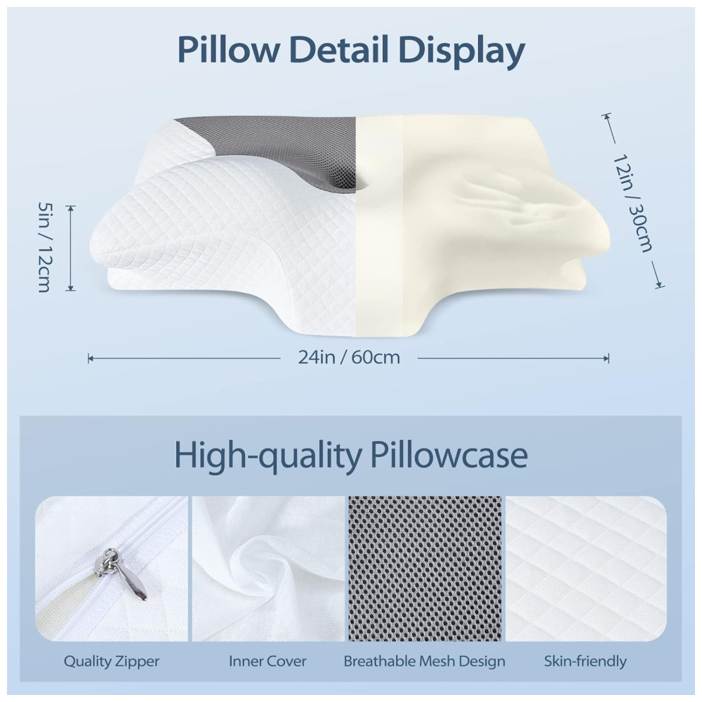 Feito para dorminhoco nas costas, dorminhoco lateral, dorminhoco do estômago o travesseiro HOMCA acomoda todas as posições de dormir Para dorminhoco lateral, o design oco central irá liberar a pressão do ouvido e manter a passagem de ar livre, enquanto seu design com sulco e curva corporal permite que o braço descanse natural e confortavelmente para uma ótima noite de sono.