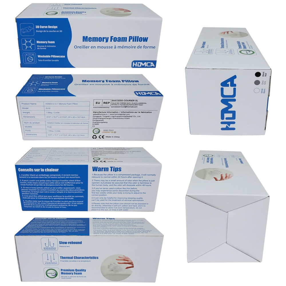 Espuma viscoelástica de recuperação suave Feita de núcleo de espuma viscoelástica pura, a almofada HOMCA recupera suavemente em 3 a 5 segundos e ajusta a sua firmeza de forma inteligente ao detectar a temperatura corporal. Nosso travesseiro permanece macio e não deformável sob uso prolongado e forte pressão.