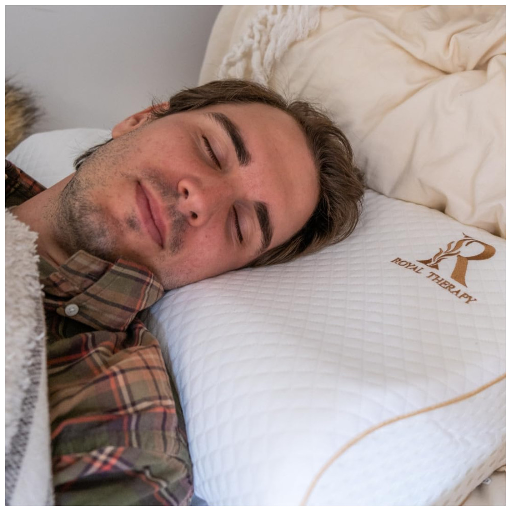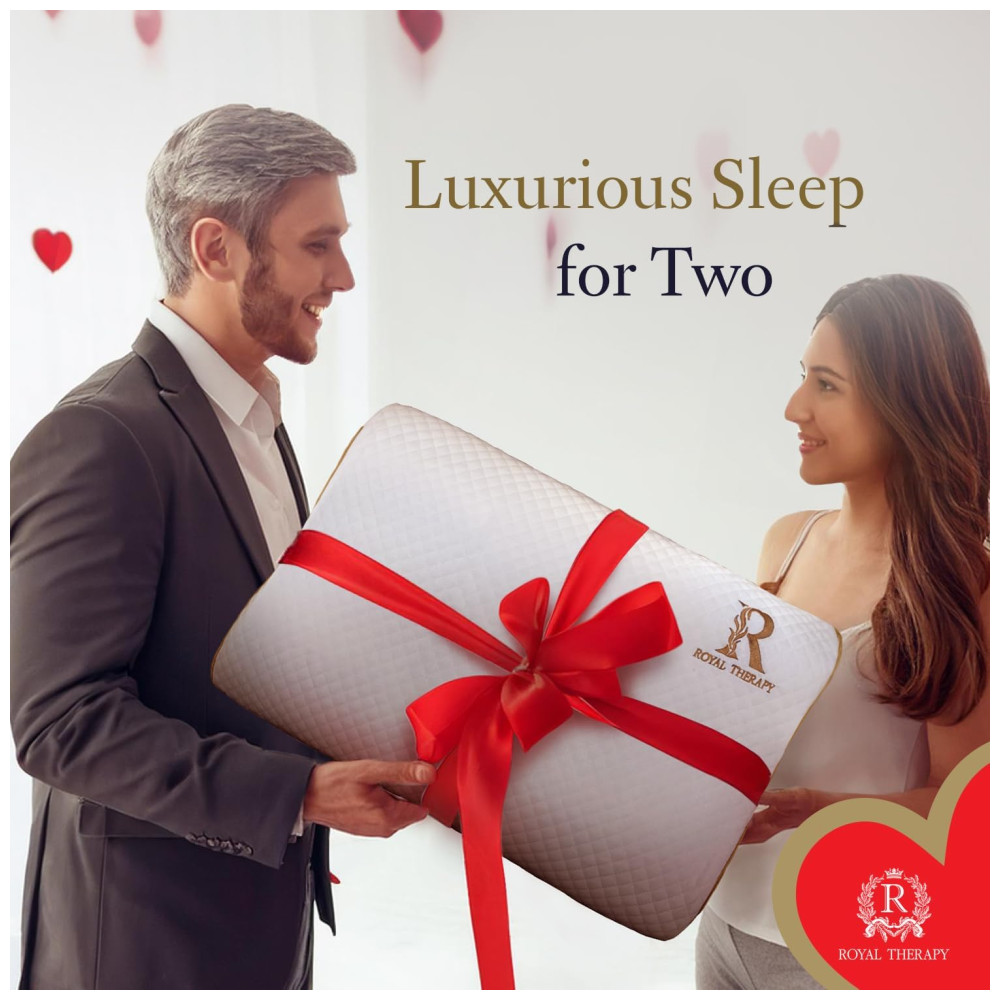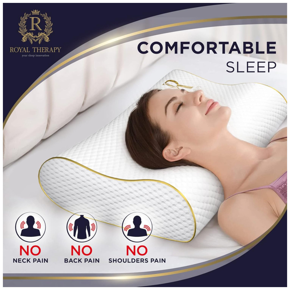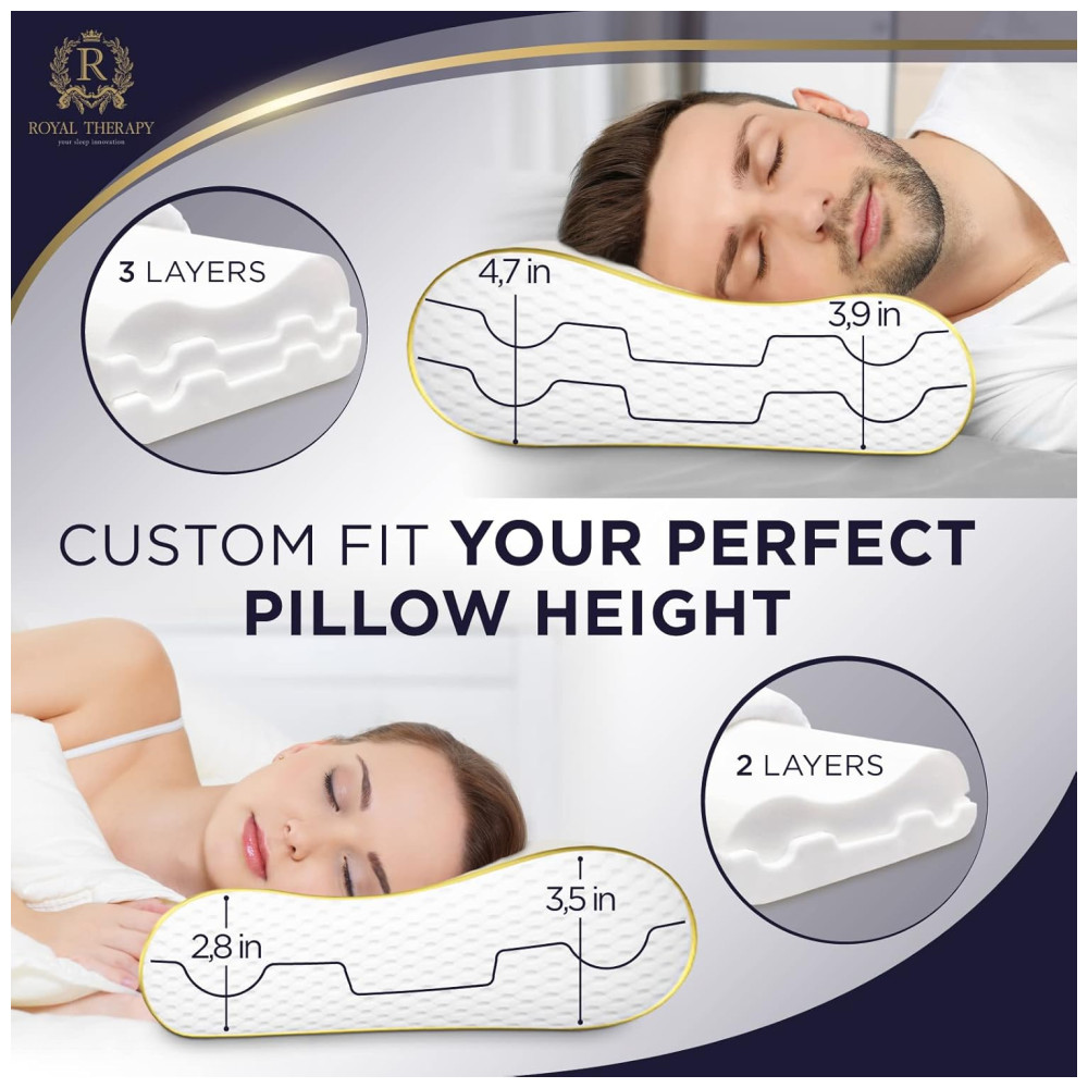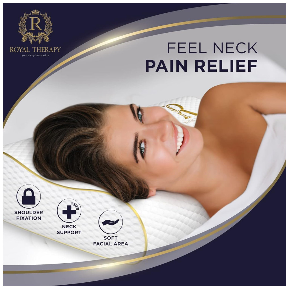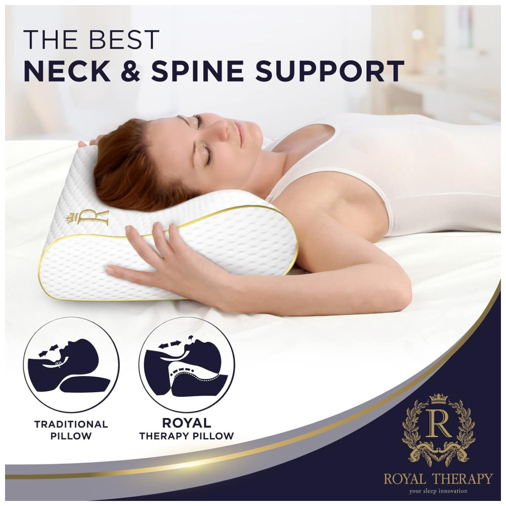 MELHOR ALINHAMENTO DA COLUNA Nosso luxuoso travesseiro cervical firme oferece maior resistência sob as partes mais pesadas da cabeça e também apóia a área do pescoço mais leve e sensível. A almofada viscoelástica Royal Therapy ajuda a reduzir as oscilações, as manobras e o desconforto. Permite que os seus músculos relaxem de forma adequada, oferecendo um apoio natural da coluna vertebral ao seu corpo, adaptando se à sua forma única, promovendo um sono profundo e reparador.