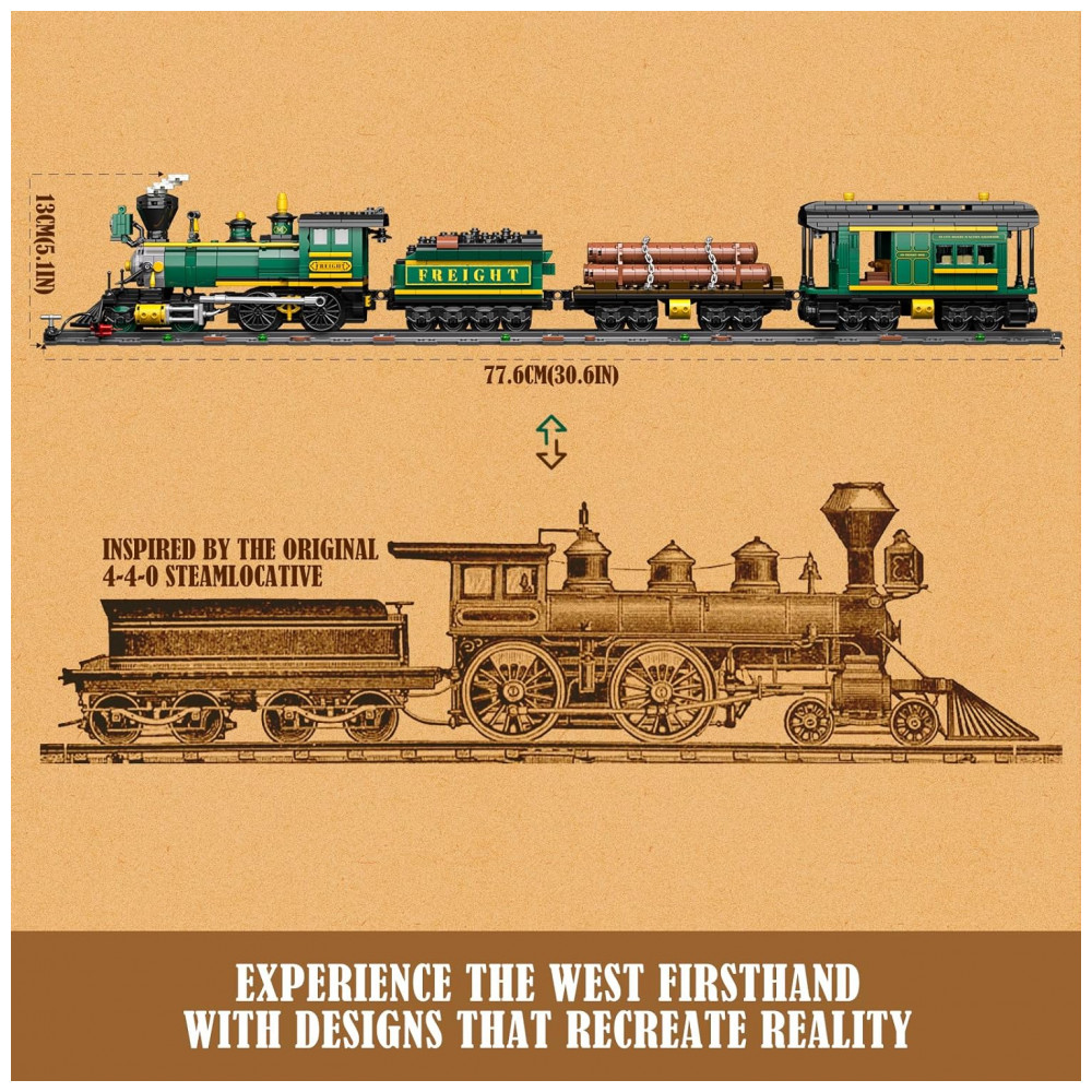 Trem de Carga Velho Oeste Funwhole com iluminação LED 1524 peças locomotiva 4-4-0 escala 1:76