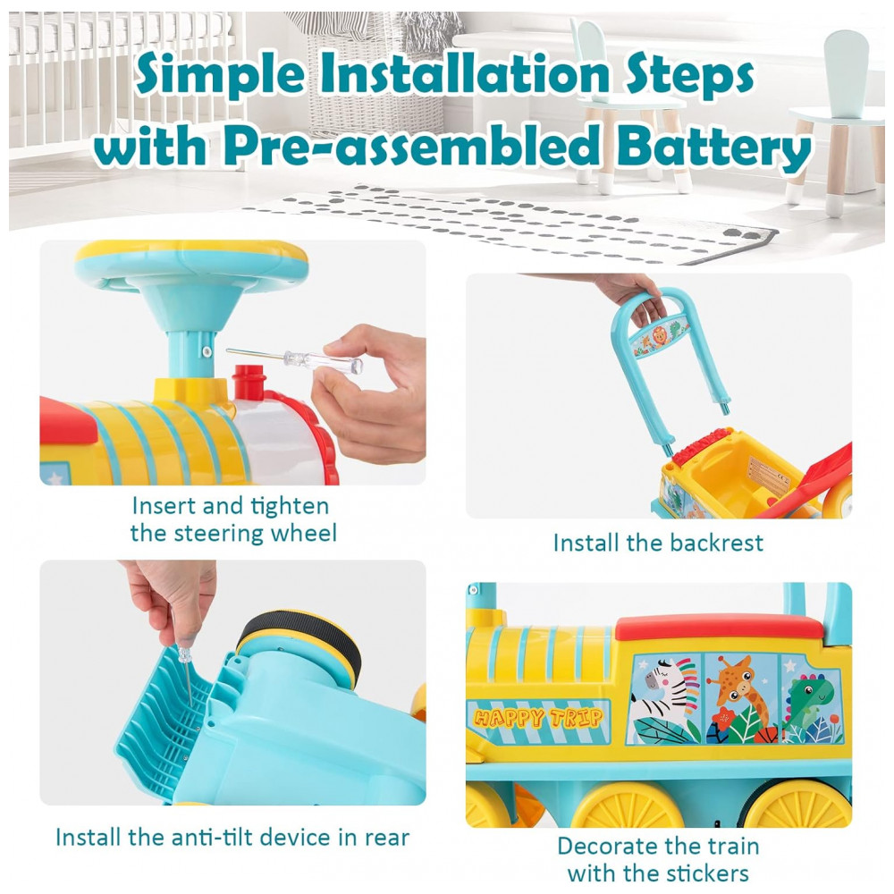 A montagem da bateria foi concluída, então este passeio elétrico no brinquedo leva apenas alguns passos simples para instalar. Após uma configuração fácil, seus filhos podem decorar o trem com os adesivos e depois desfrutar de uma feliz viagem de trem.