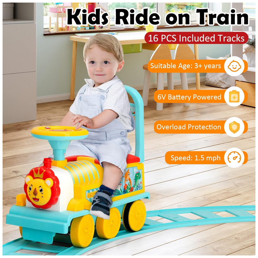Este passeio de trem alimentado por bateria de 6V vem com 16 trilhos PCS, para que as crianças possam criar uma pista circular com 2,18 metros de diâmetro externo e permitir que seu filho dirija como um trem real nos trilhos. Claro, este passeio elétrico de trem também pode sair dos trilhos como um passeio normal de brinquedo em ambientes internos ou externos. Quando este passeio de brinquedo estiver sem bateria, este passeio de trem pode ser convertido para andar de carro.