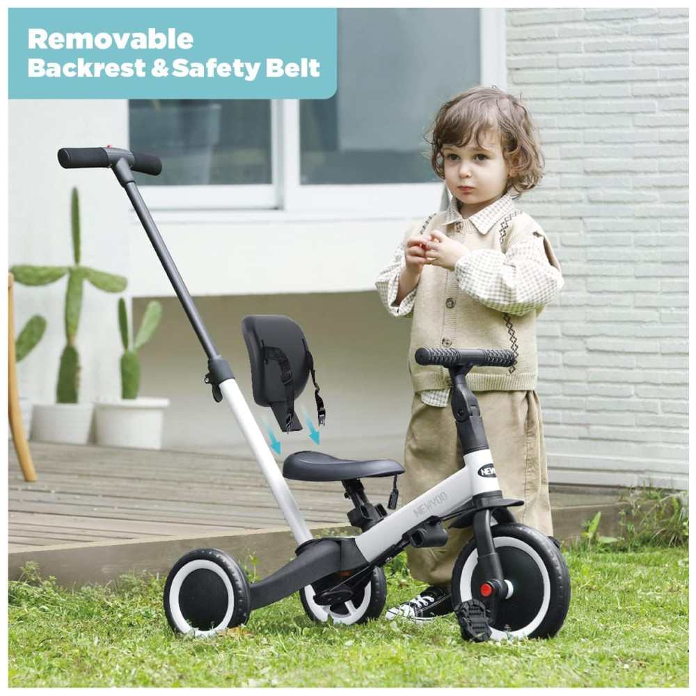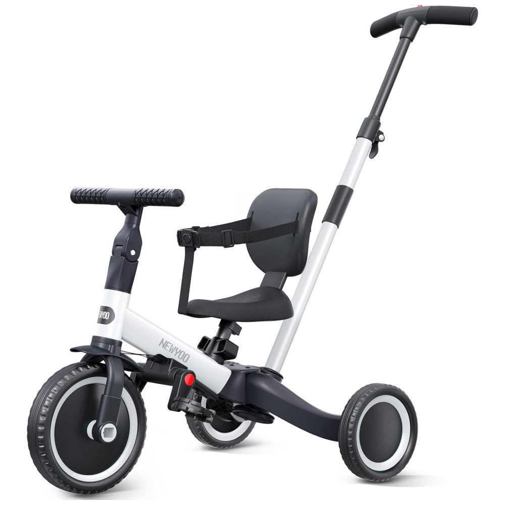 Triciclo Infantil 4 em 1 com Alça de Direção dos Pais e Pedais Removíveis para Crianças de 1 a 4 Anos Newyoo TR007 Branco