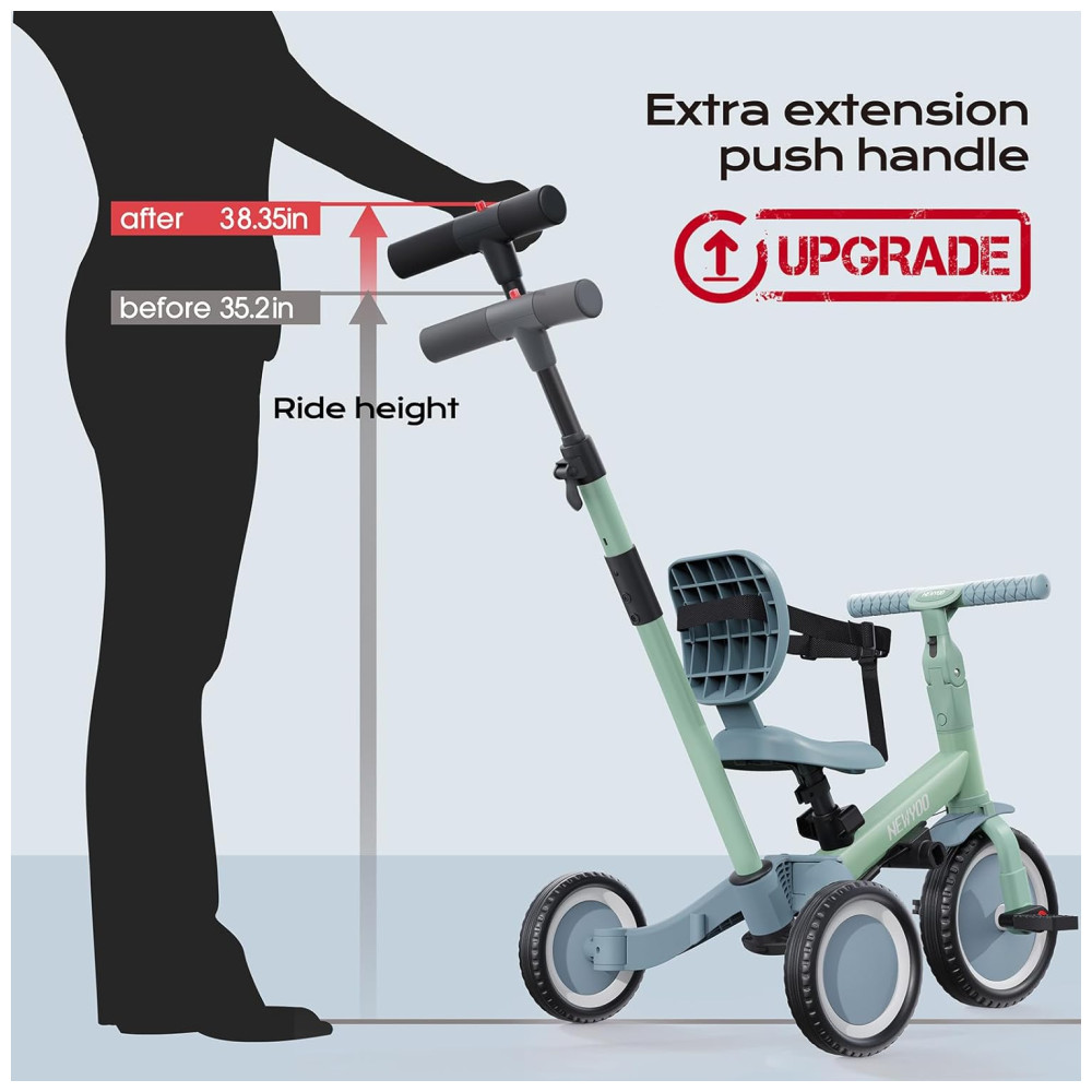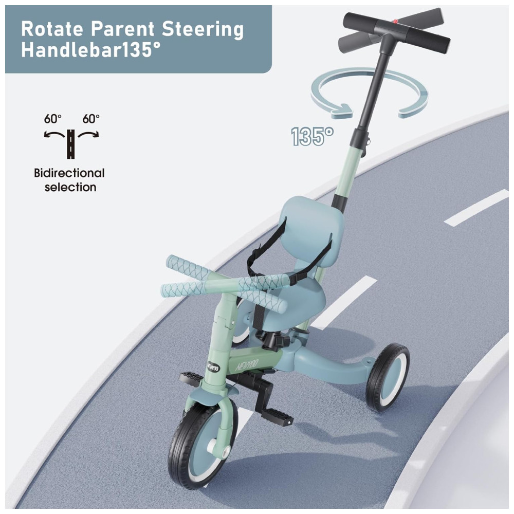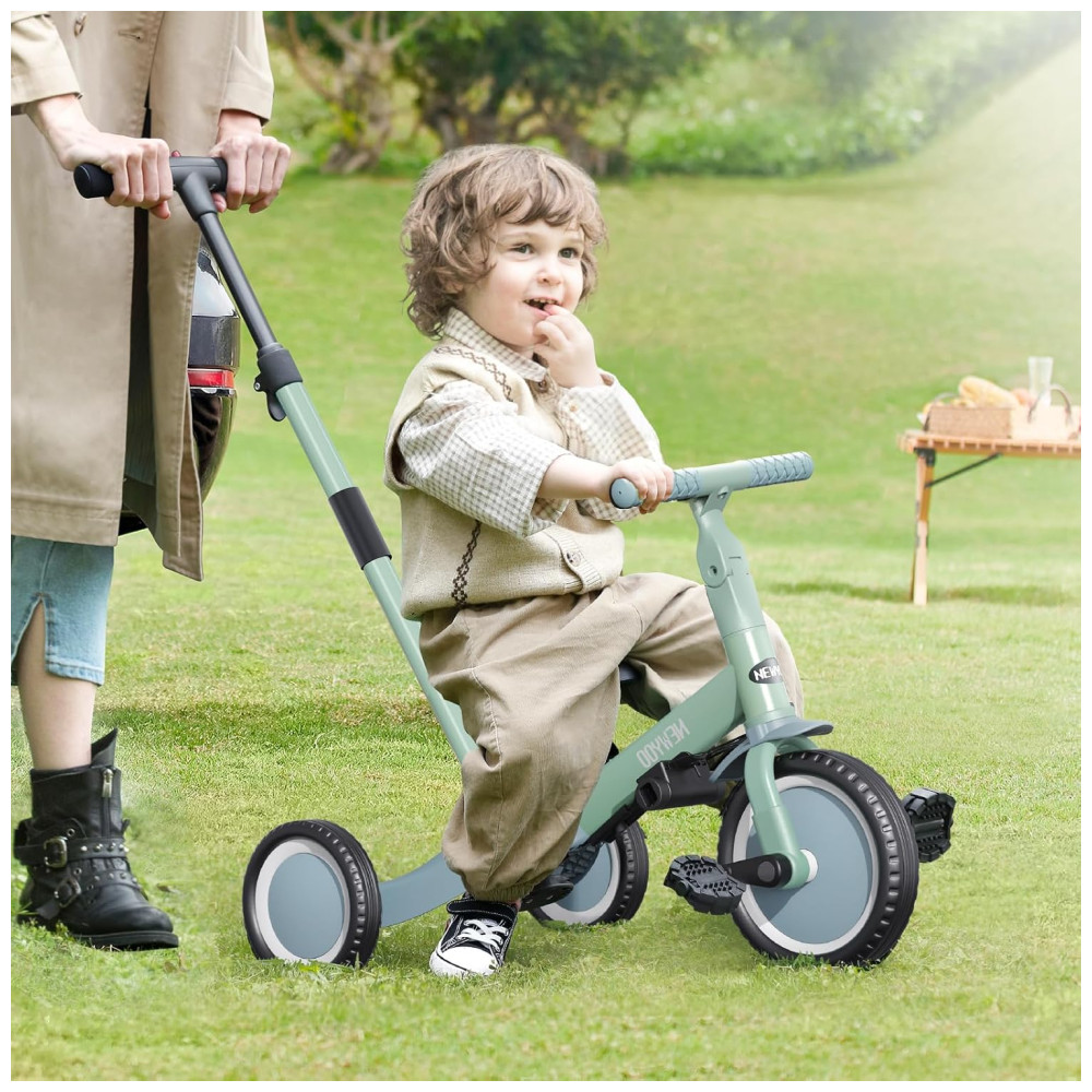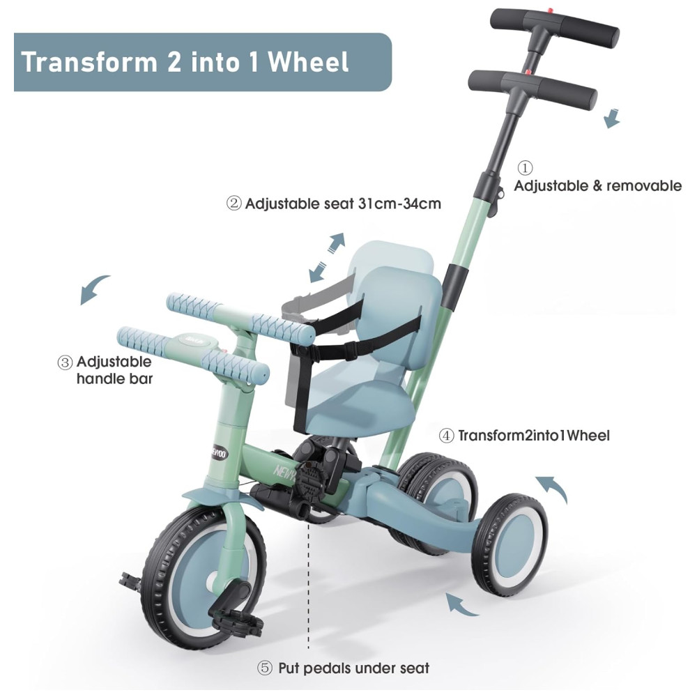 Triciclo Infantil 4 em 1 com Alça de Direção dos Pais e Pedais Removíveis para Crianças de 1 a 4 Anos Newyoo TR007 Verde