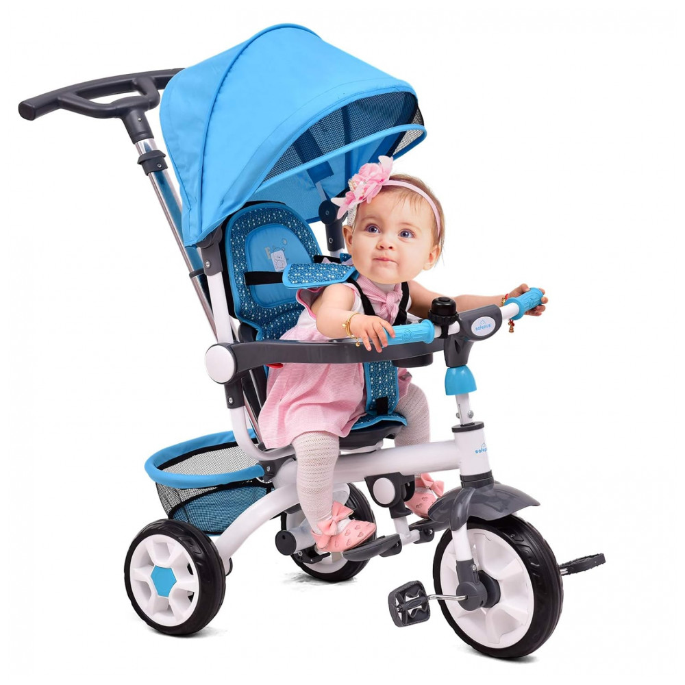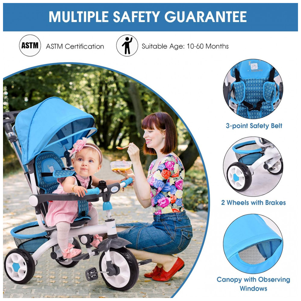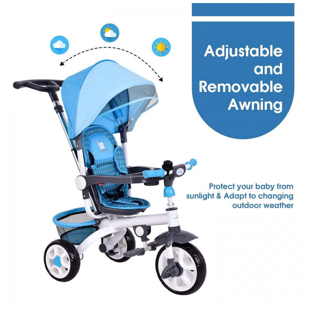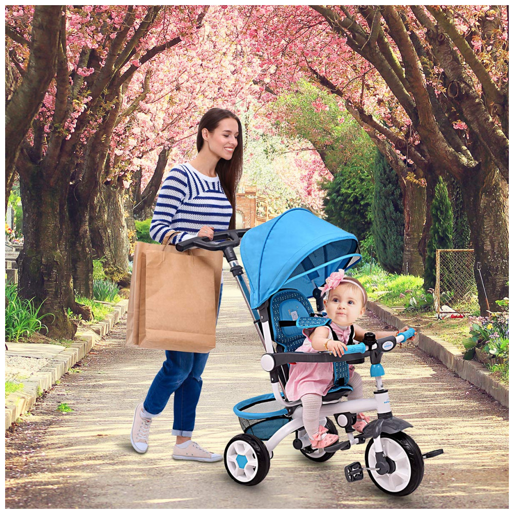 Triciclo Infantil 4 em 1 com Alça Removível Sino Assento Giratório e Cesta de zenamento para Crianças de 1 a 5 anos Costzon Azul