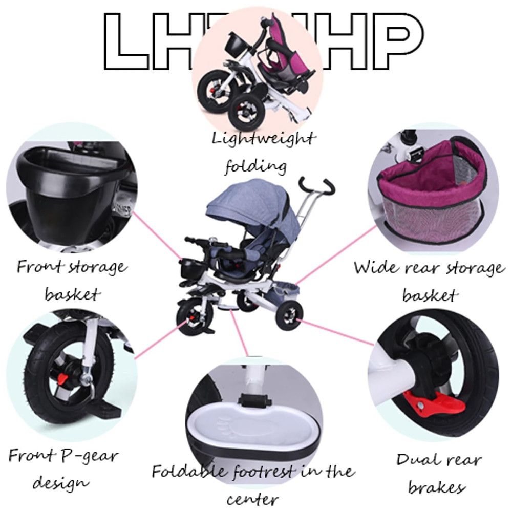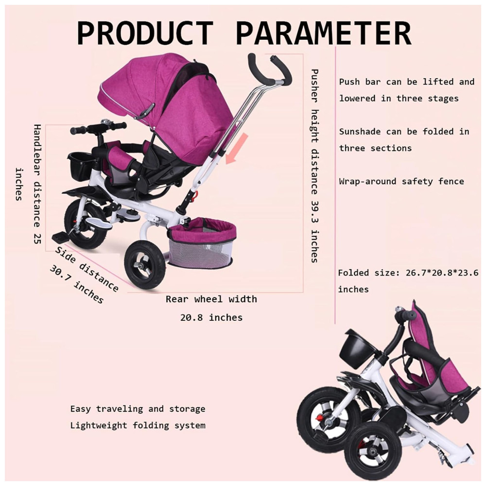 ALÇA AJUSTÁVEL, CONVENIENTE PARA OS PAIS USAR: Quando as crianças não conseguem andar de forma independente, os pais podem facilmente usar a alça para controlar a direção e a velocidade deste triciclo. A alça é removível para quando a criança puder andar sozinha.