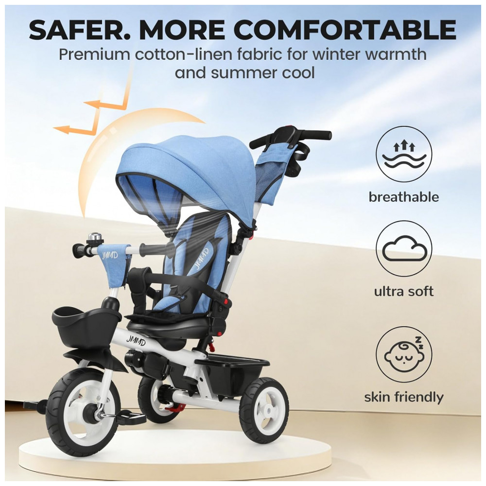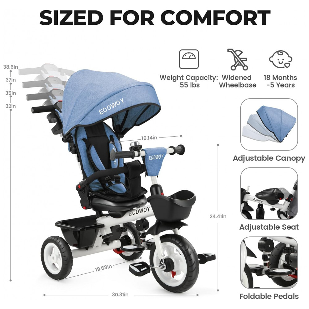 Triciclo Infantil 6 em 1 com Alça Ajustável Cobertura Removível e Arnês de Segurança para Crianças de 1 a 5 Anos EOOWOY Azul