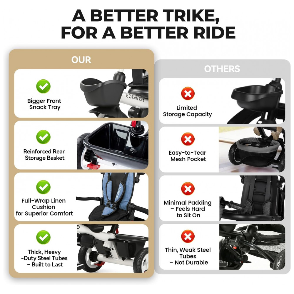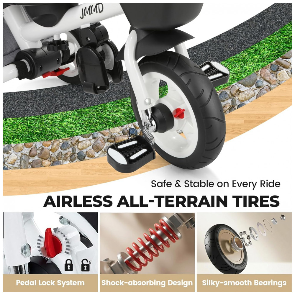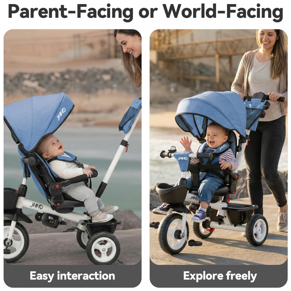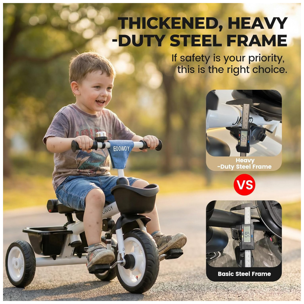Com um design multifuncional, este triciclo infantil grande pode ser transformado em 6 modos de uso. Este triciclo bebê pode crescer com uma criança de 18 meses a 5 anos.