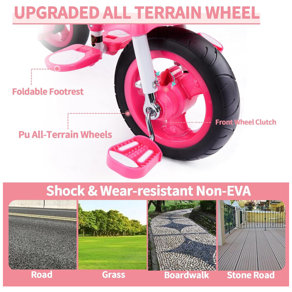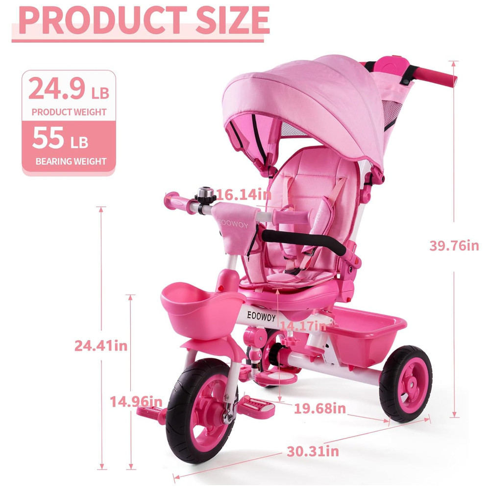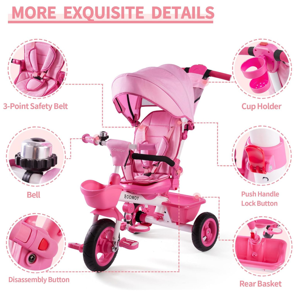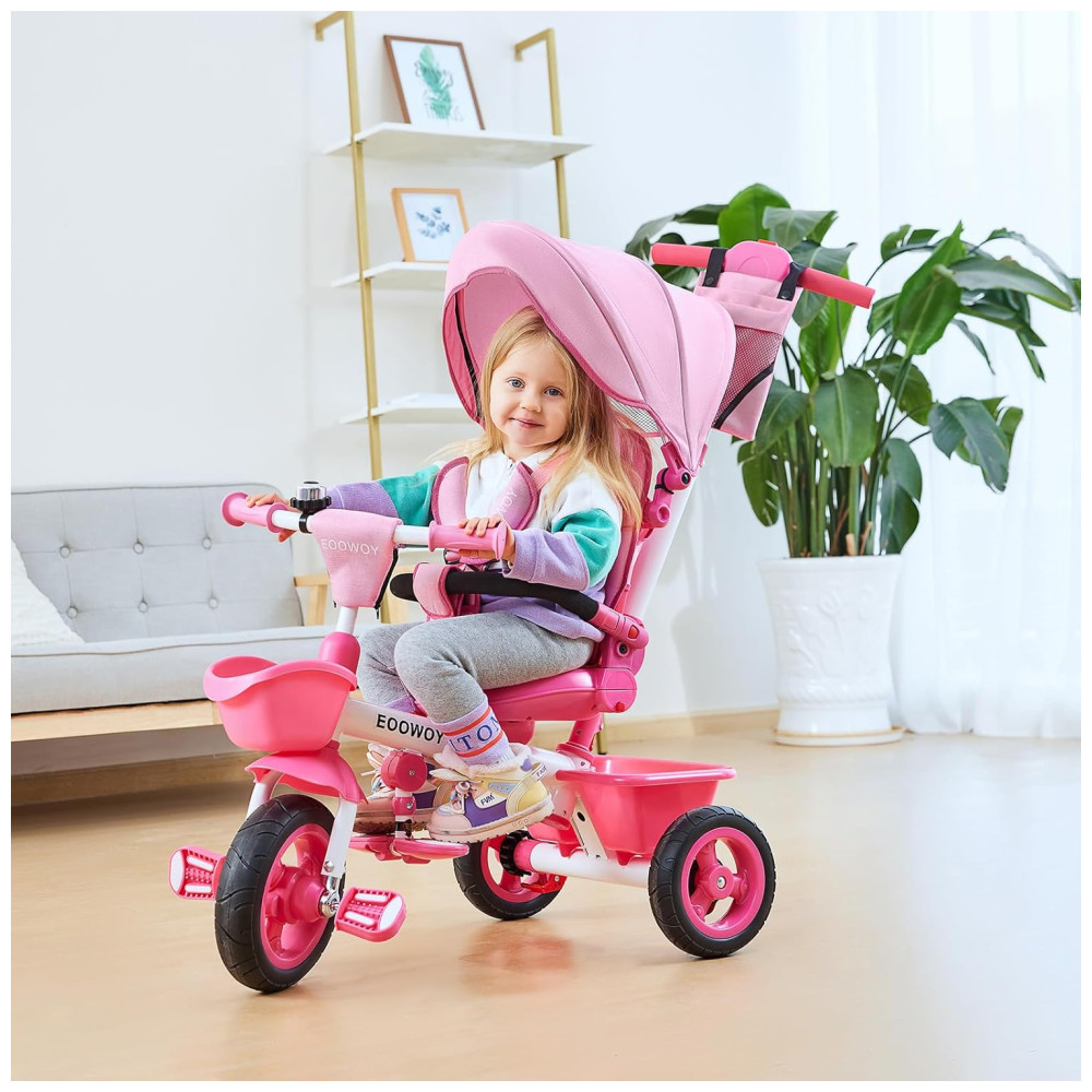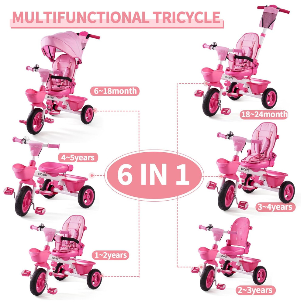 Triciclo Infantil 6 em 1 com Alça Ajustável Cobertura Removível e Arnês de Segurança para Crianças de 1 a 5 Anos EOOWOY Rosa