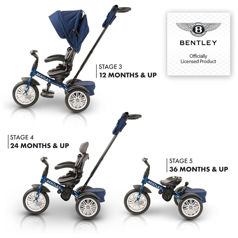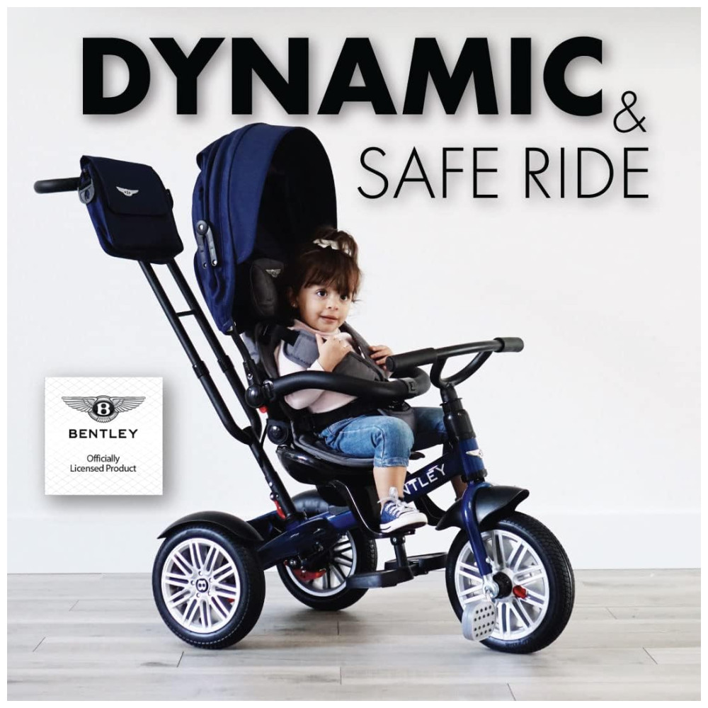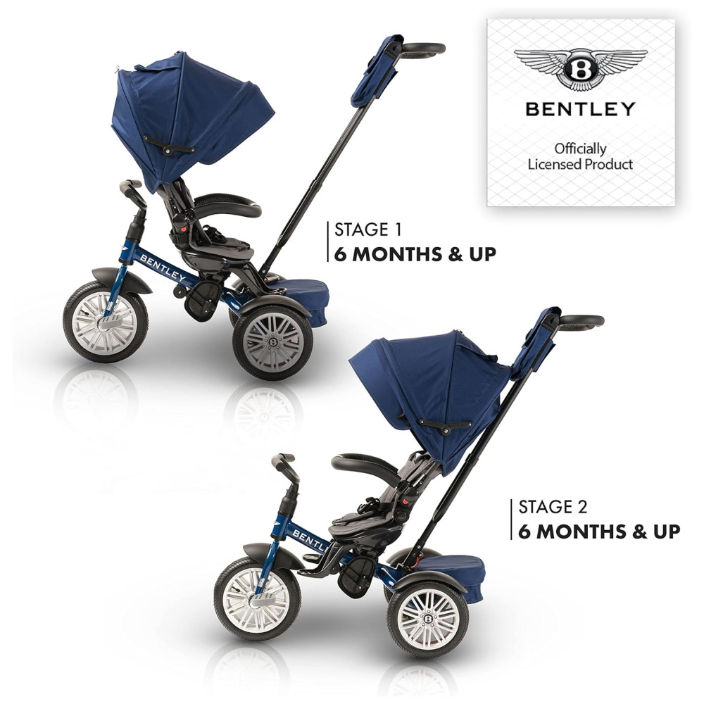 Triciclo Infantil 6 em 1 Oficialmente Projetado pela Bentley com Cobertura e Alça para os Pais POSH BABY KIDS Azul