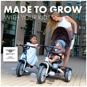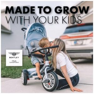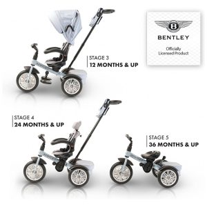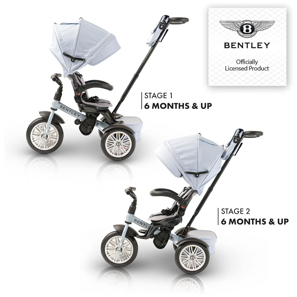 Triciclo Infantil 6 em 1 Oficialmente Projetado pela Bentley com Cobertura e Alça para os Pais POSH BABY KIDS Azul Claro