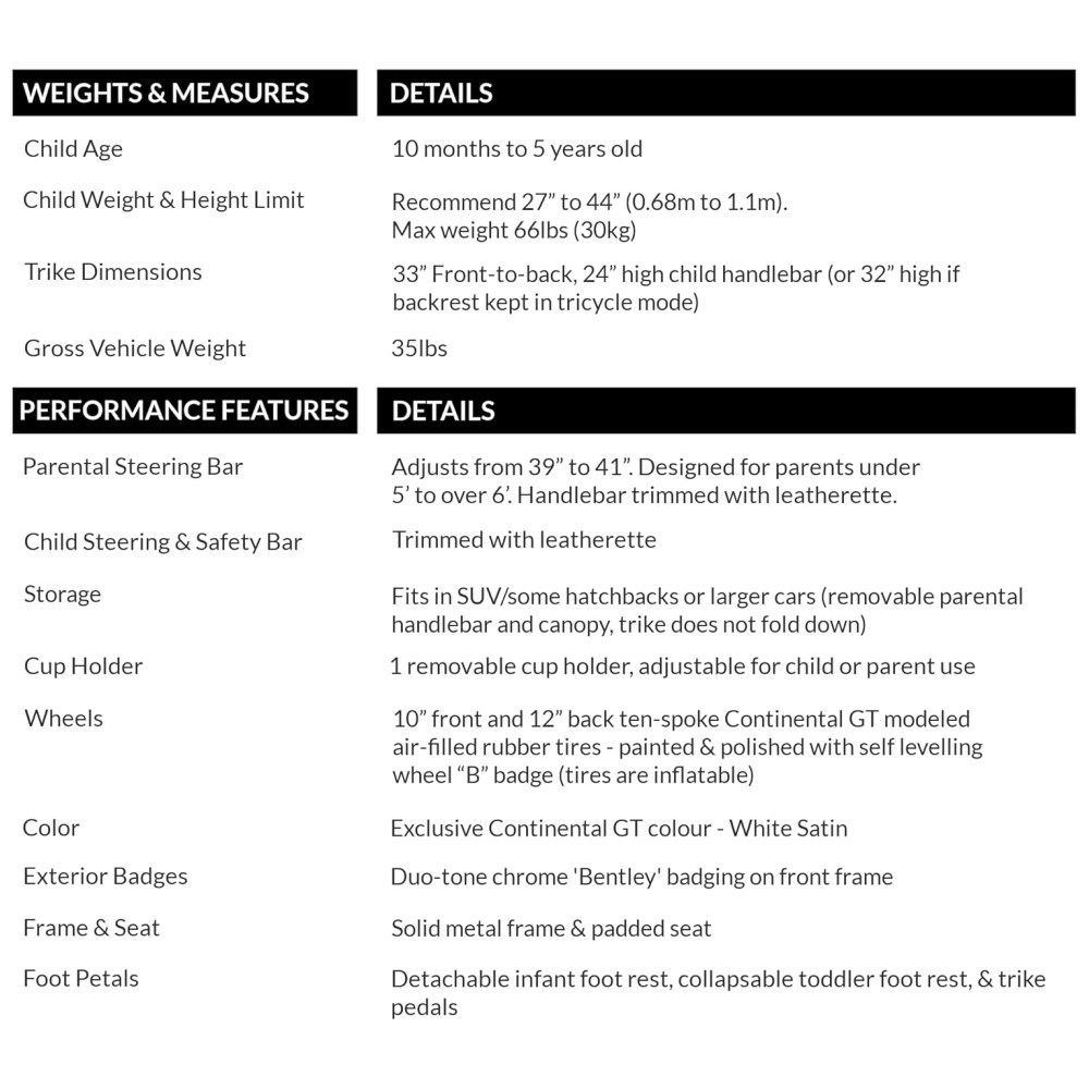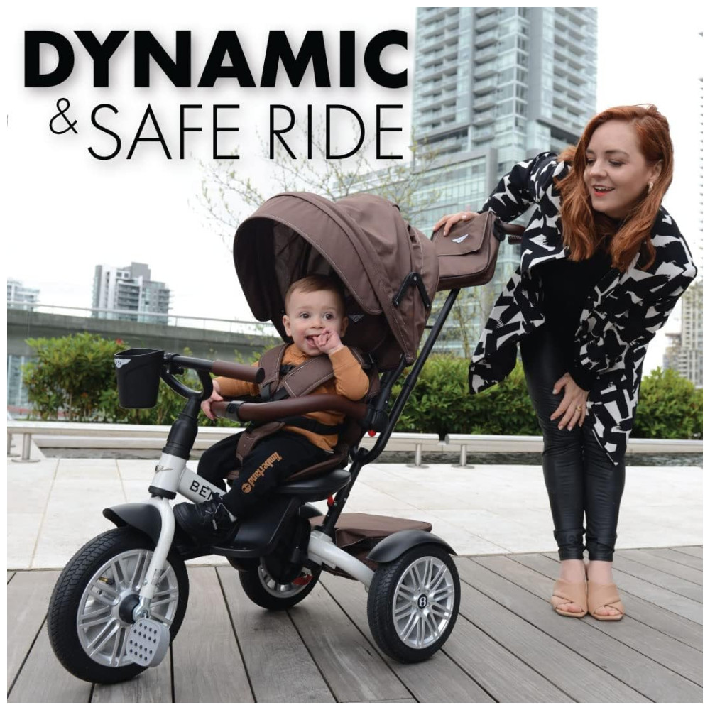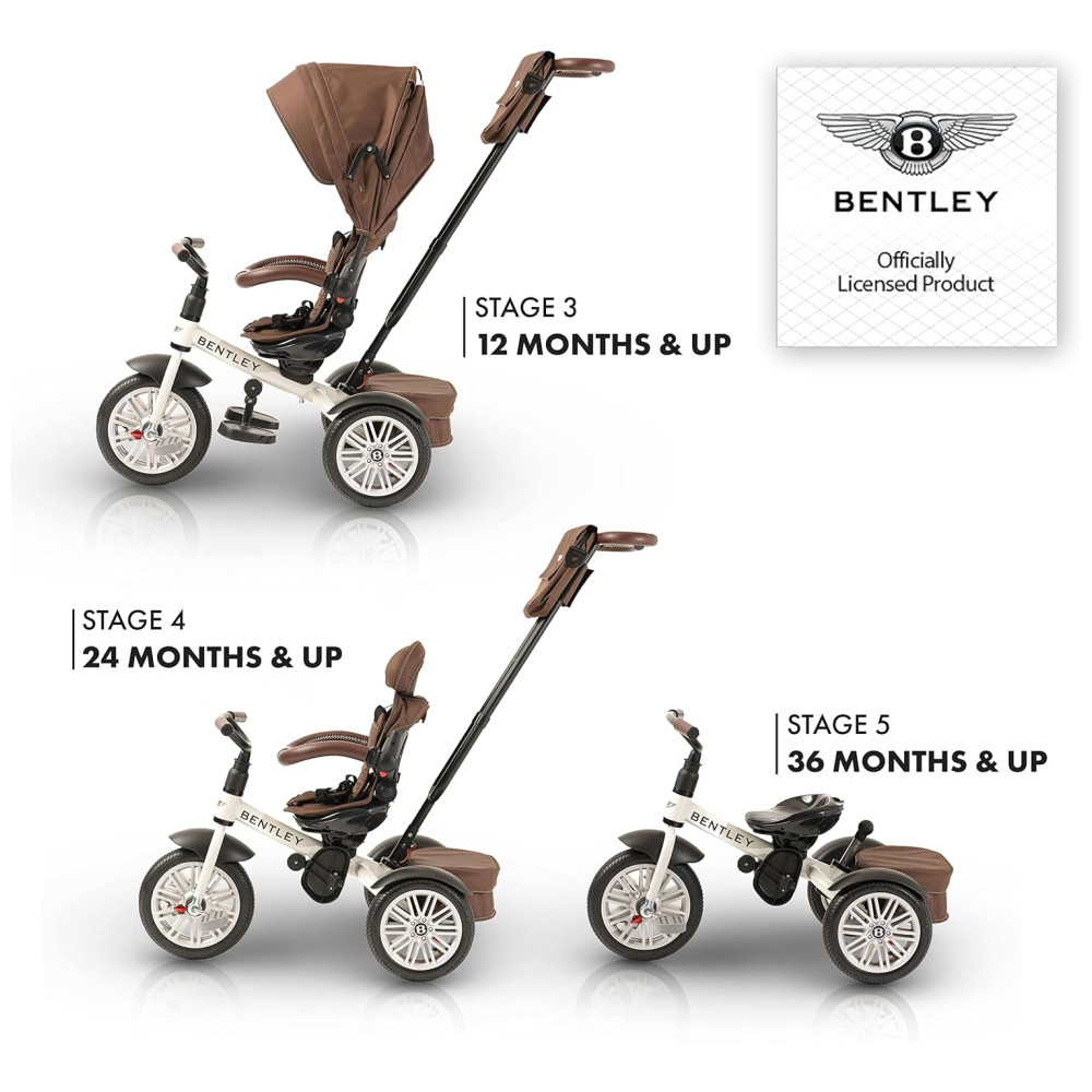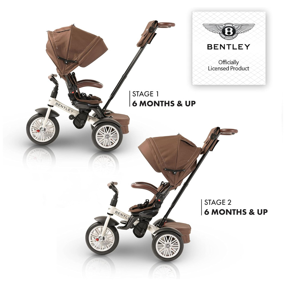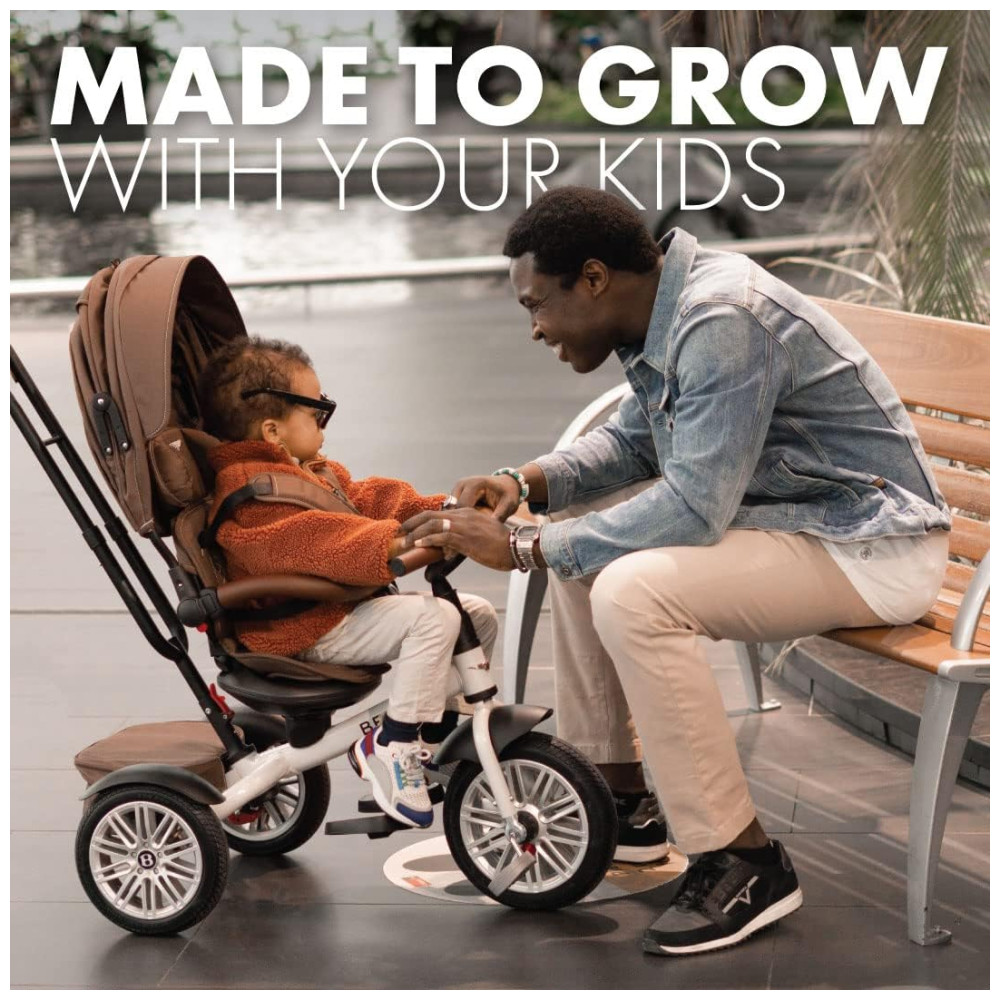 Triciclo Infantil 6 em 1 Oficialmente Projetado pela Bentley com Cobertura e Alça para os Pais POSH BABY KIDS Branco e Marrom