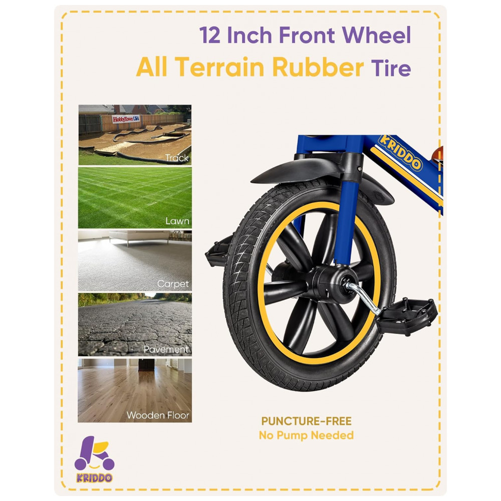 USO INTERNO E EXTERIOR: O triciclo infantil KRIDDO é construído com estrutura sólida, o que torna a condução ao ar livre segura. As rodas silenciosas de absorção de choque permitem que seus filhos andem silenciosamente dentro de casa e não danifiquem o chão.