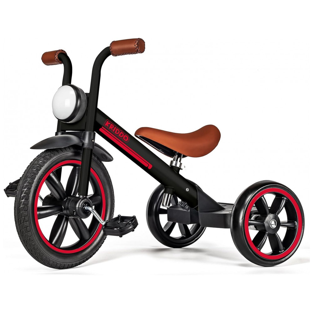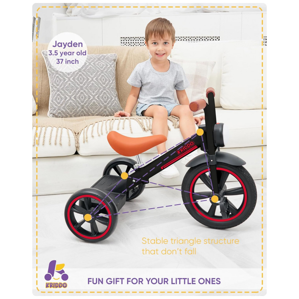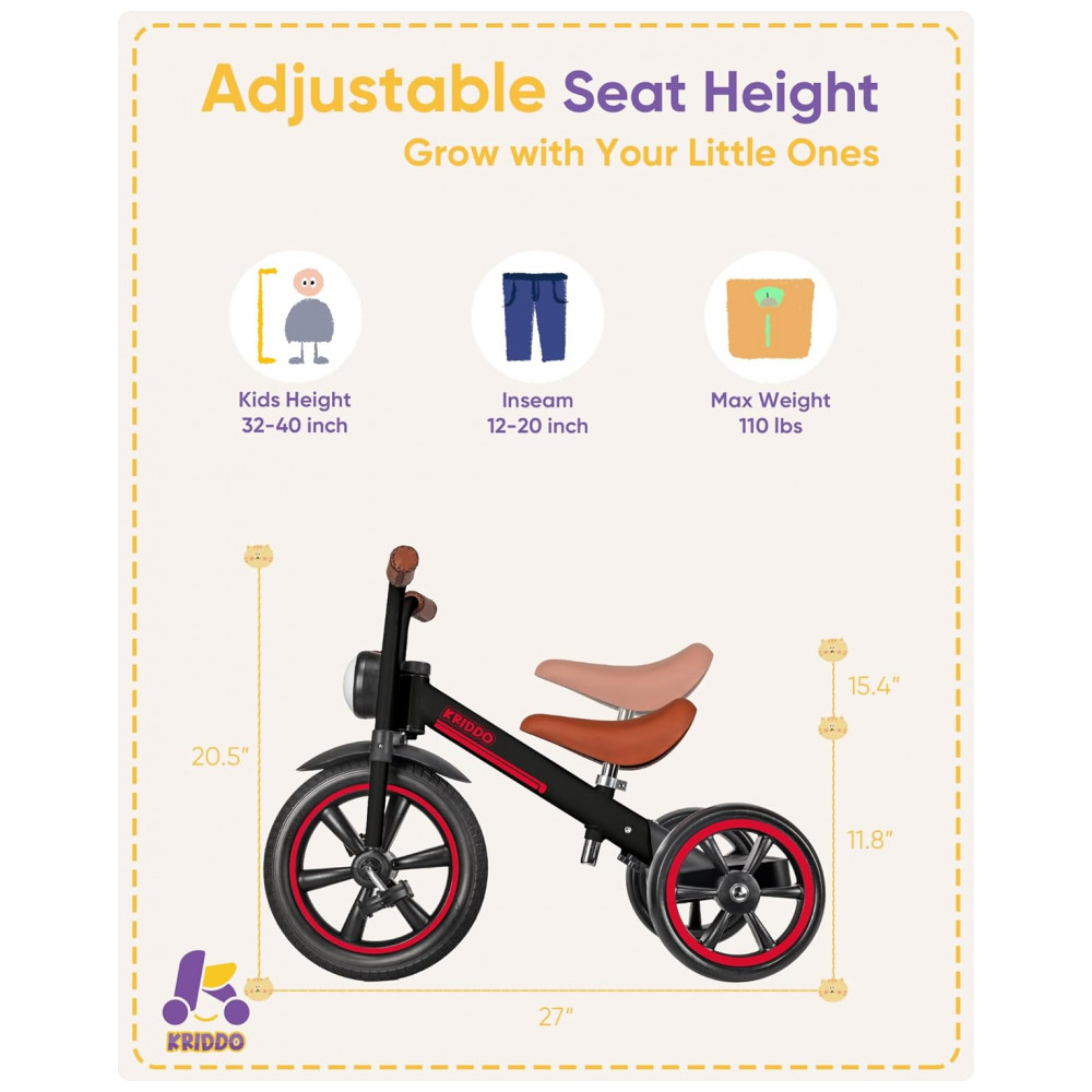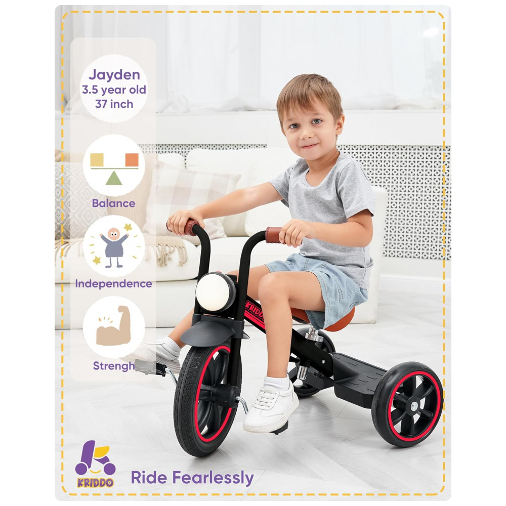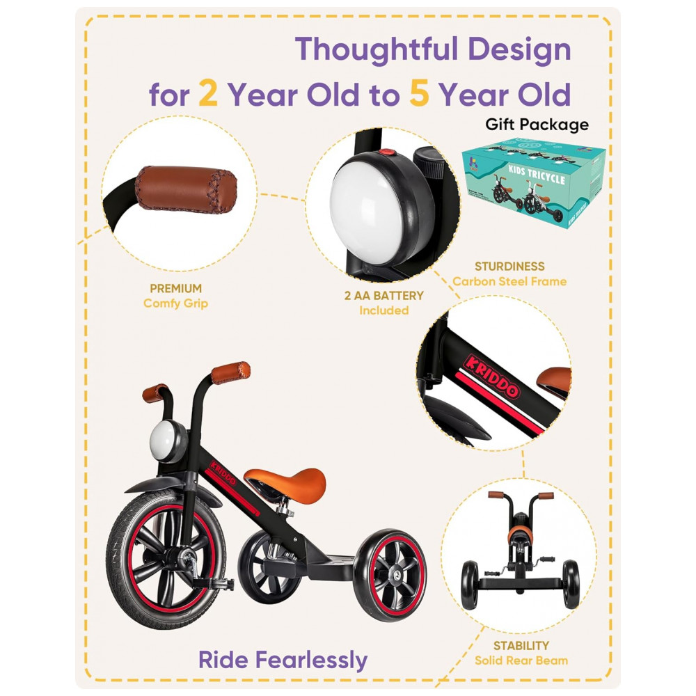 Triciclo Infantil com Luz Frontal e Altura do Assento Ajustável para Crianças de 2 a 5 Anos KRIDDO Preto