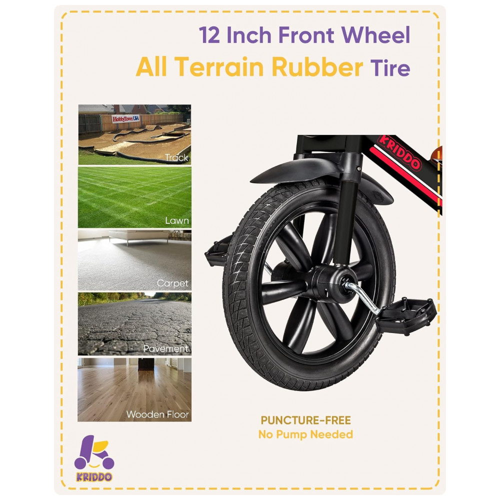 USO INTERNO E EXTERIOR: O triciclo infantil KRIDDO é construído com estrutura sólida, o que torna a condução ao ar livre segura. As rodas silenciosas de absorção de choque permitem que seus filhos andem silenciosamente dentro de casa e não danifiquem o chão.