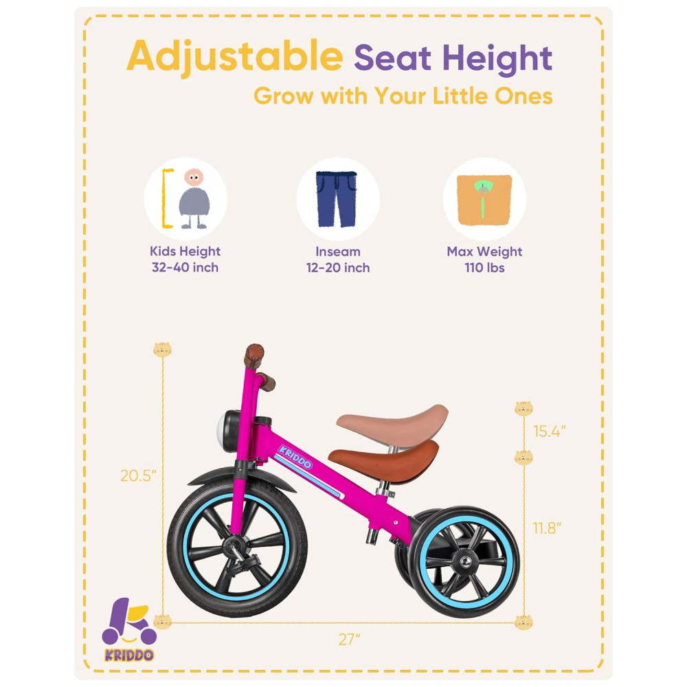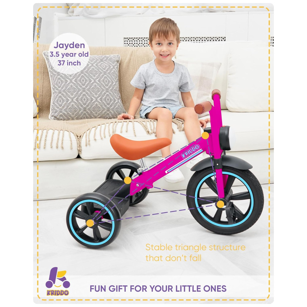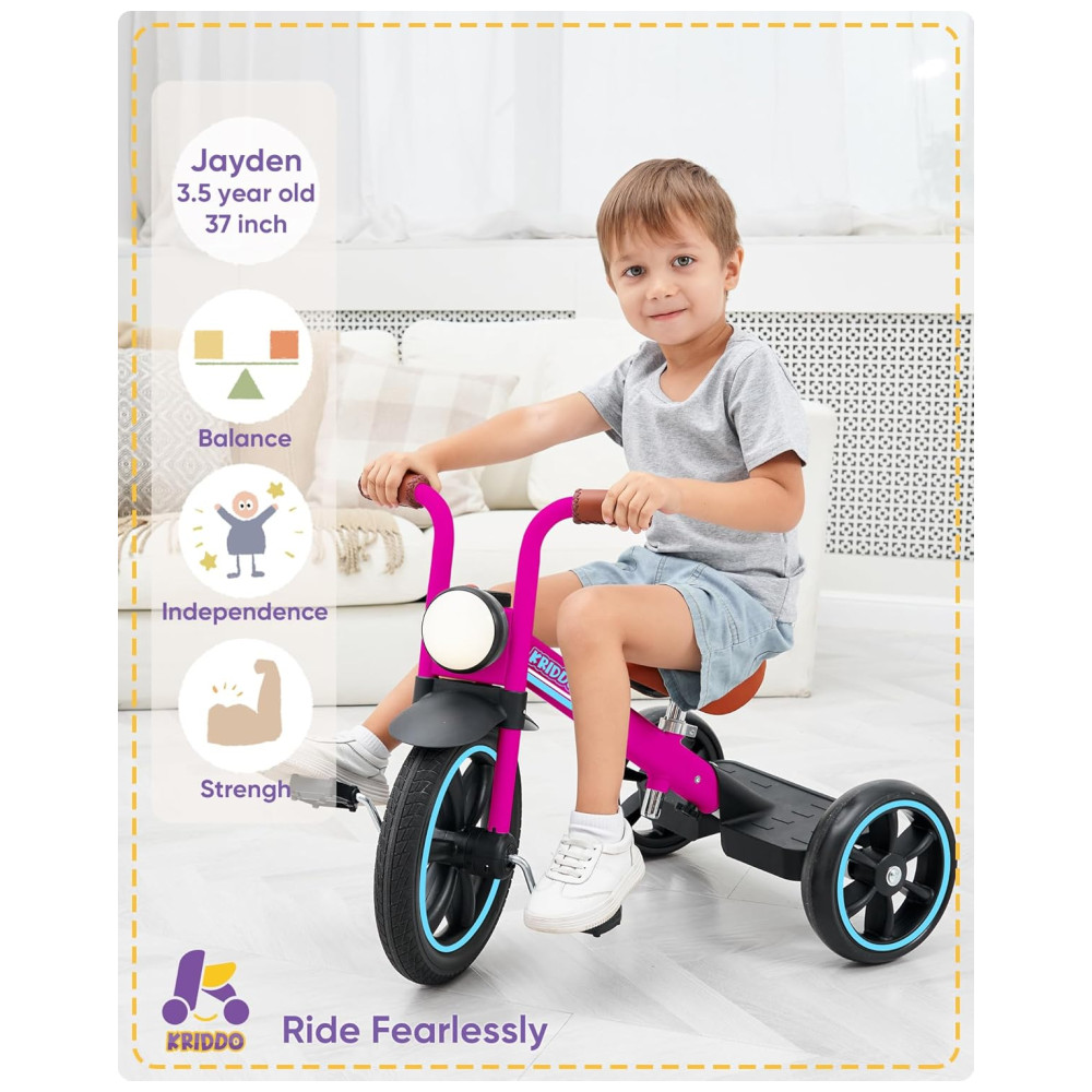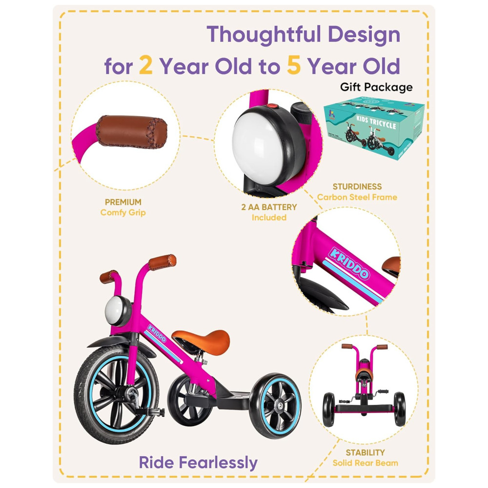 Triciclo Infantil com Luz Frontal e Altura do Assento Ajustável para Crianças de 2 a 5 Anos KRIDDO Rosa