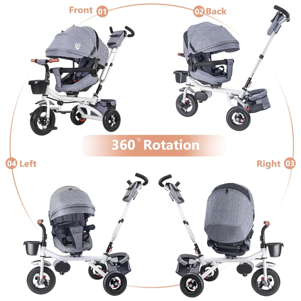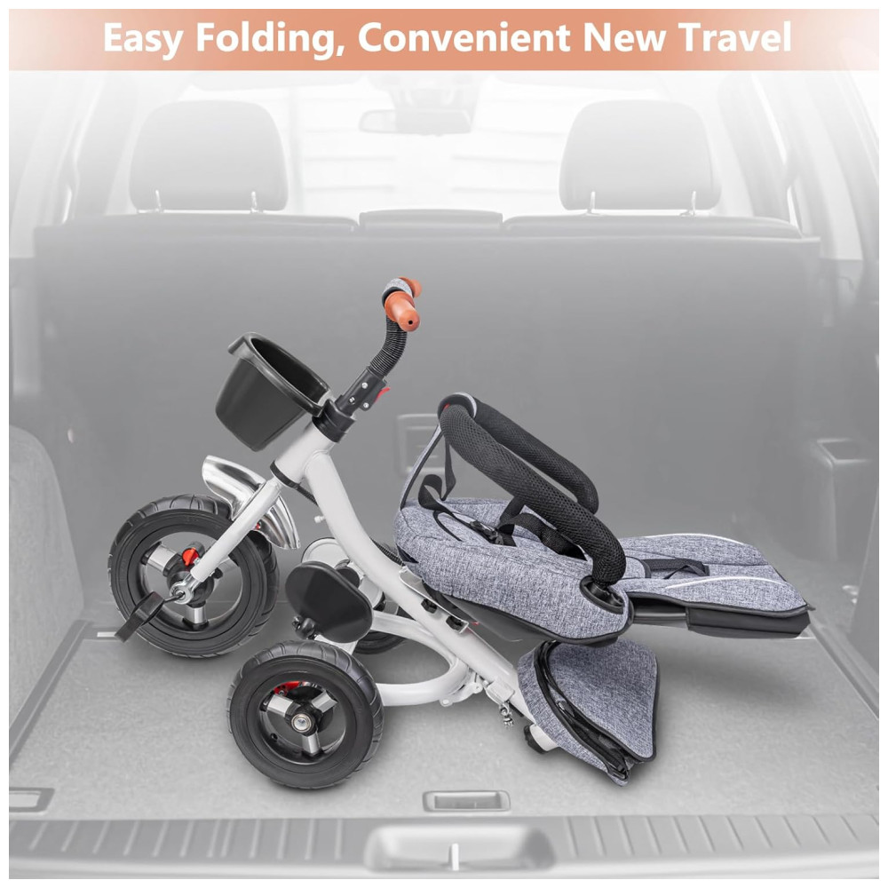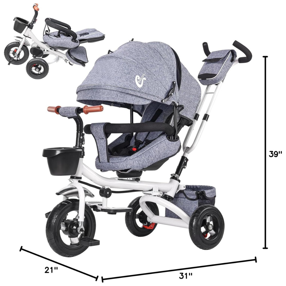 Triciclo Infantil Dobrável 4 em 1 com Modo Bicicleta Alça e Assento Giratório 360º para Crianças Acima de 1 a 6 Anos Godmy Cinza