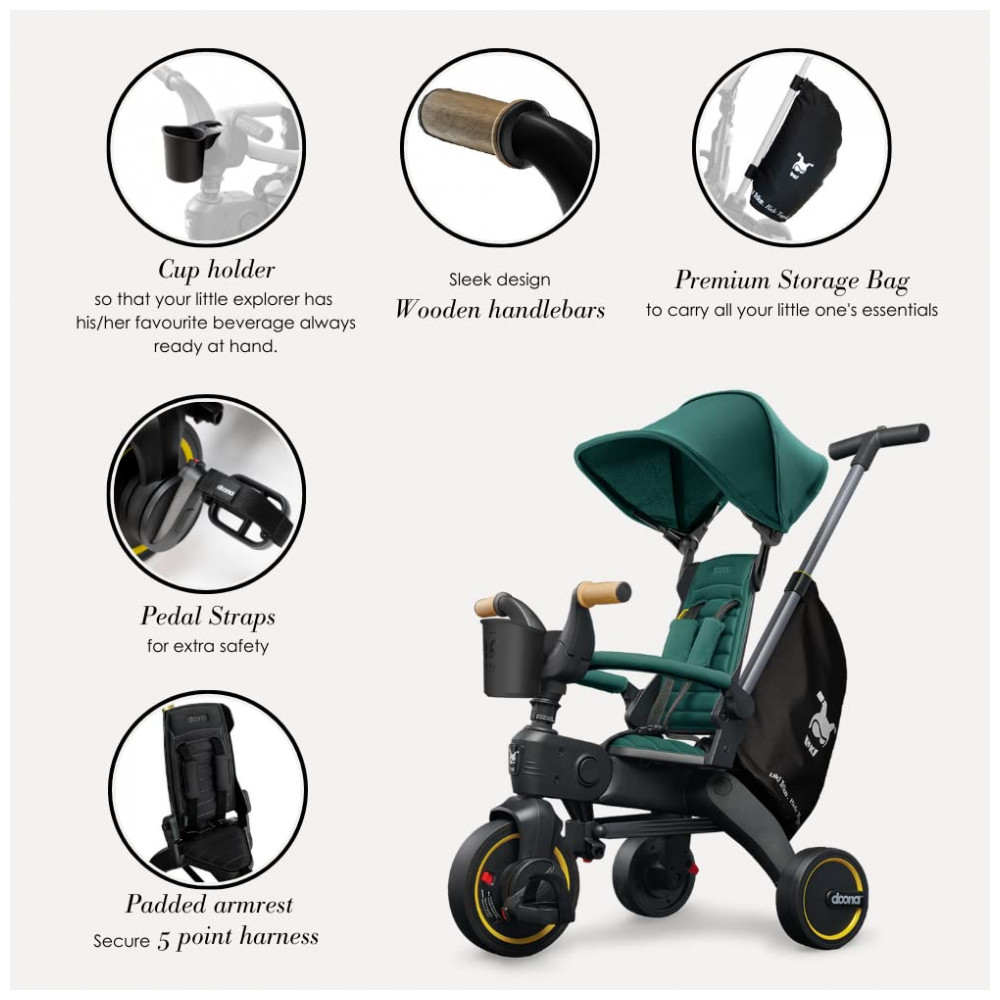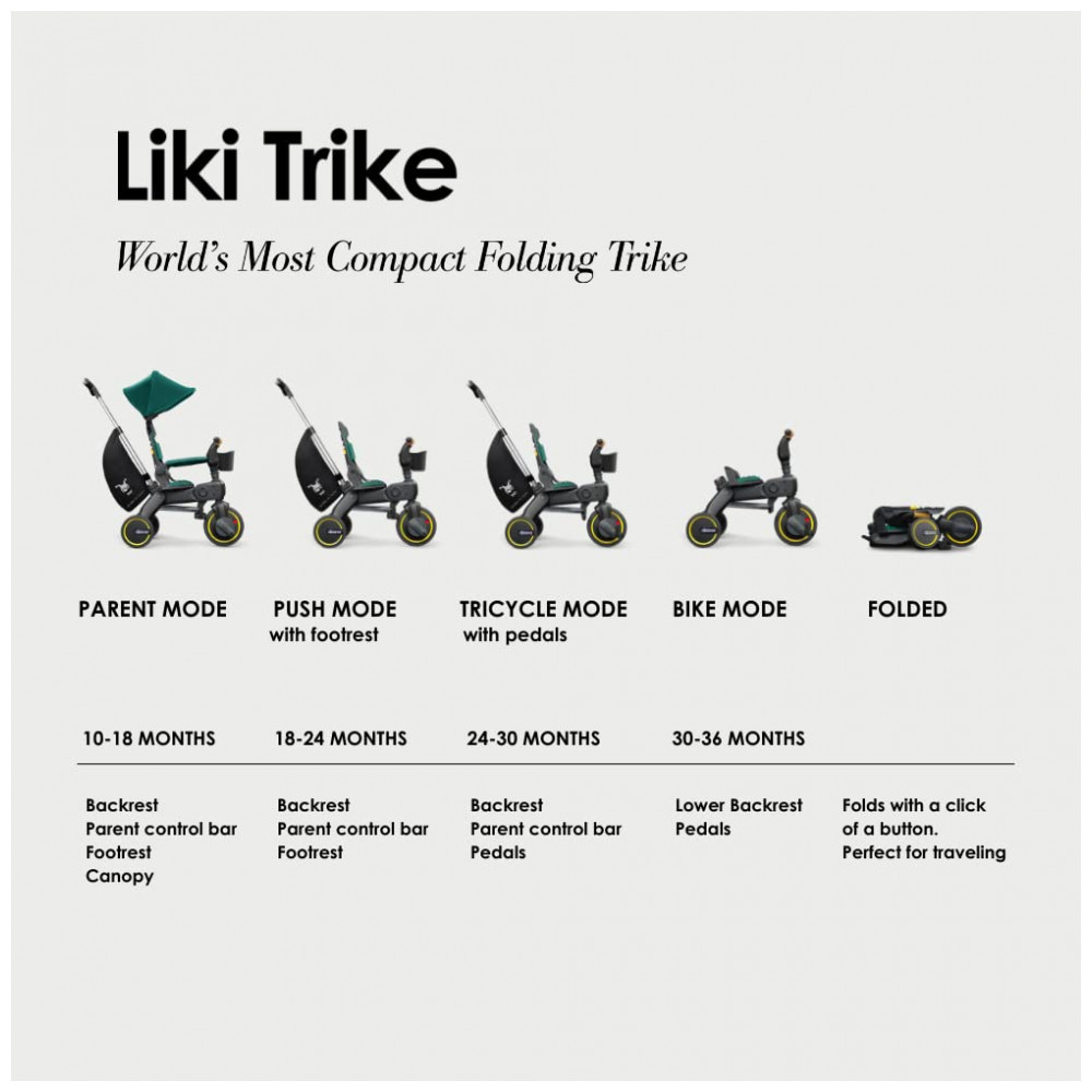Triciclo Infantil Dobrável Premium para Crianças de 1 a 3 Anos Doona Liki Trike S5 Verde
